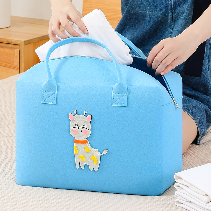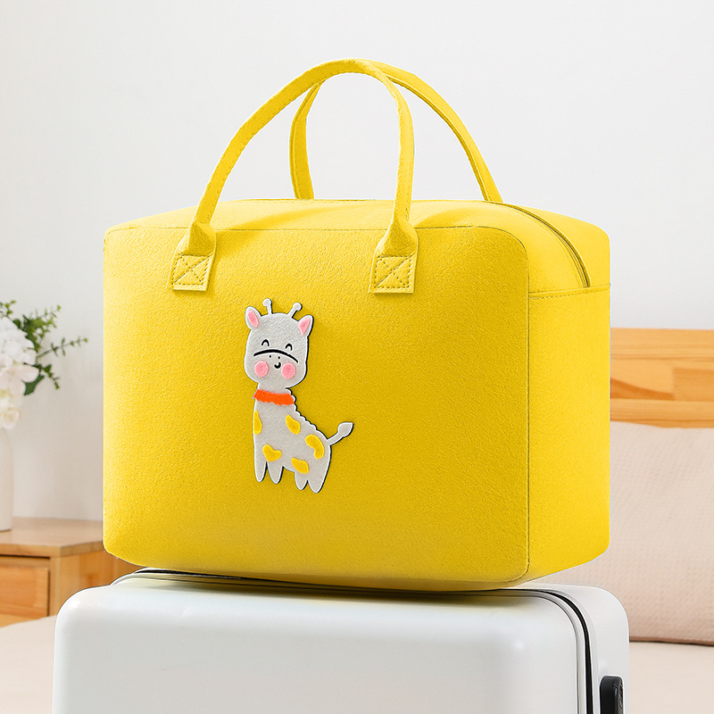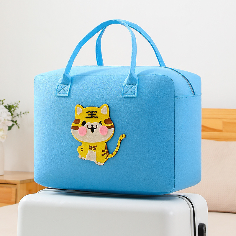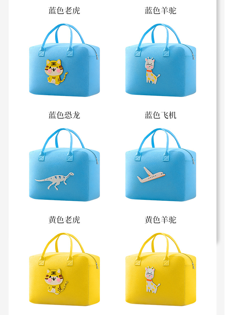 毛毡旅行收纳包卡通大容量拉链手提袋学生旅行包行李包时尚购物包