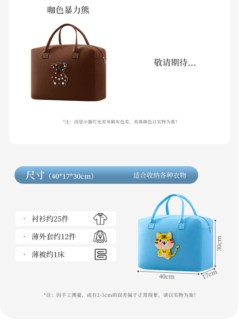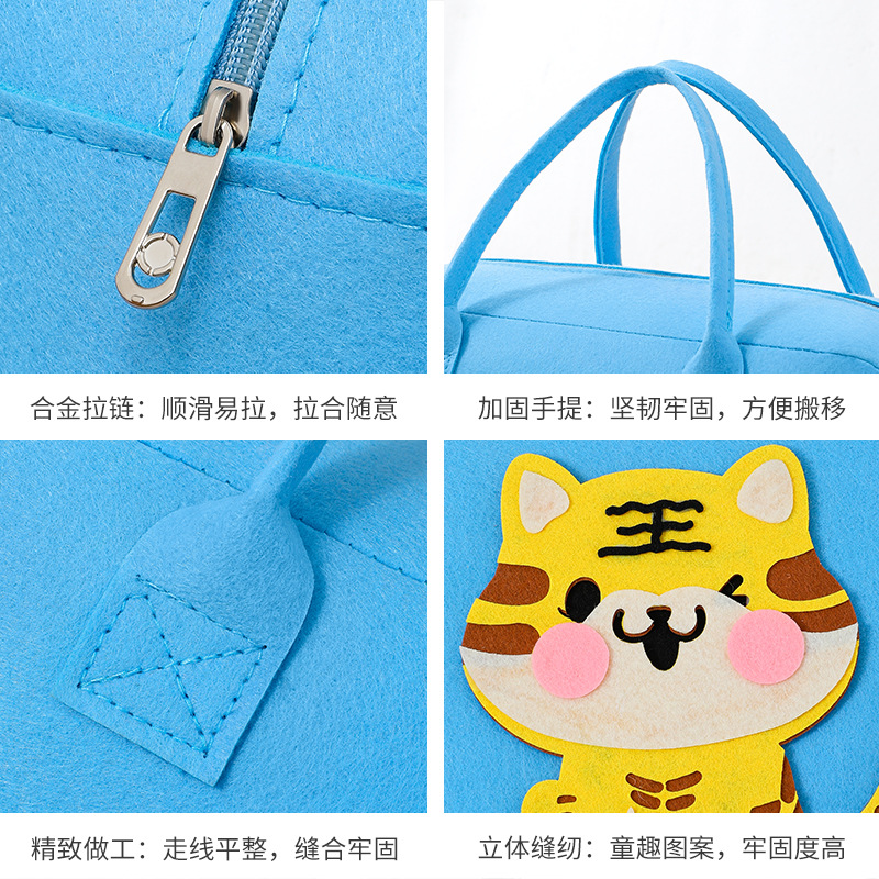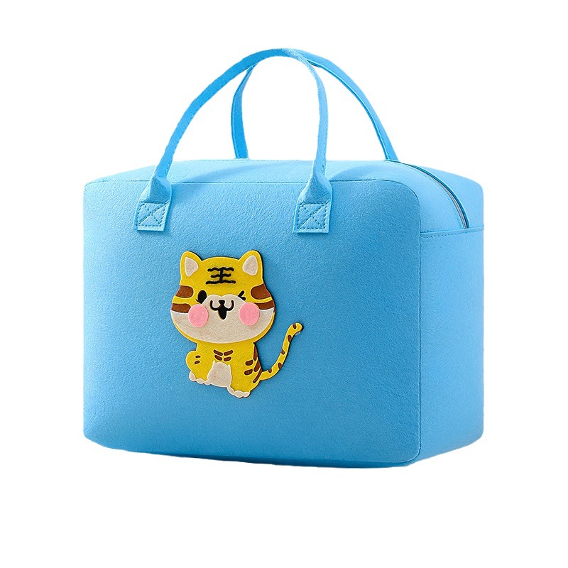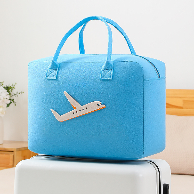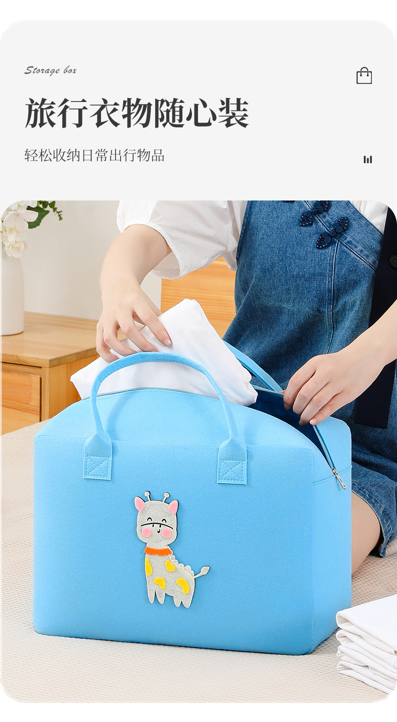 毛毡旅行收纳包卡通大容量拉链手提袋学生旅行包行李包时尚购物包