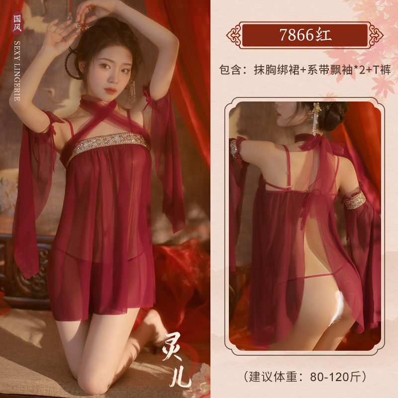 国潮情趣内衣纯欲性感舞姬床上诱惑制服汉服抹胸肚兜免脱套装组合
