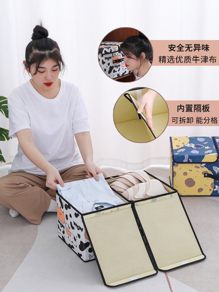牛津布双盖收纳箱衣物收纳有盖可折叠内衣裤玩具整理箱收纳盒