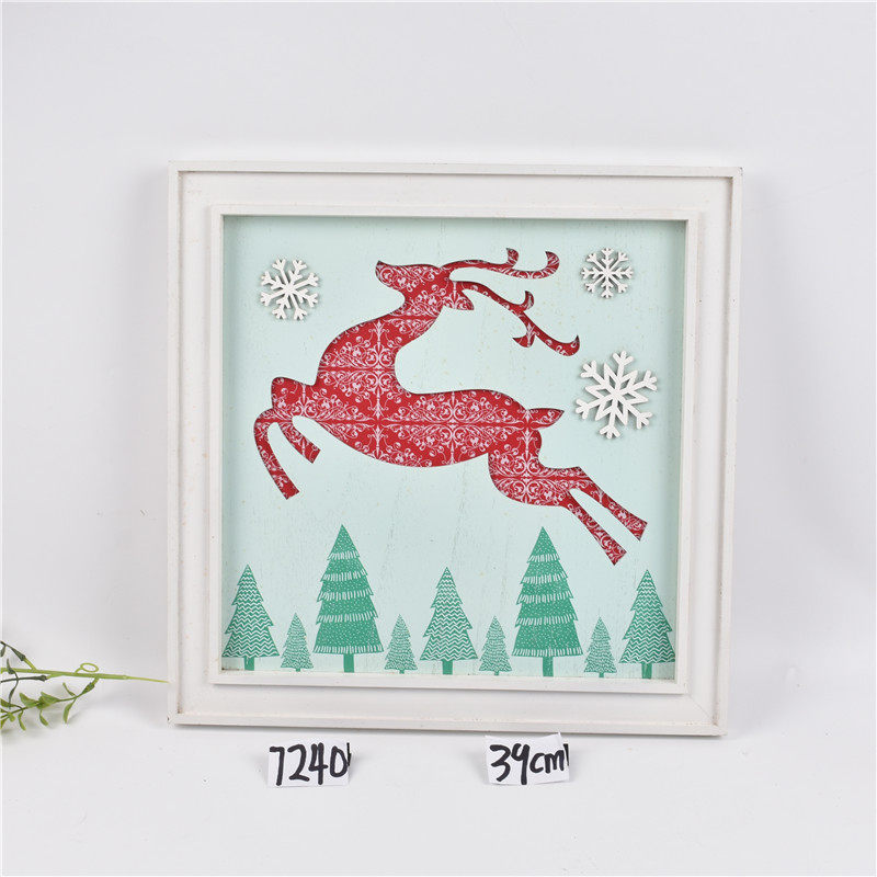 圣诞节装饰品木制印字相框和布艺雪人鹿摆饰木制树型摆饰印字挂件