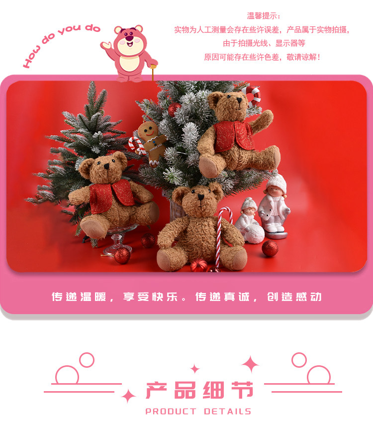 圣诞酒店礼品圣诞毛绒熊公仔儿童抱抱熊礼品圣诞小熊公仔玩具