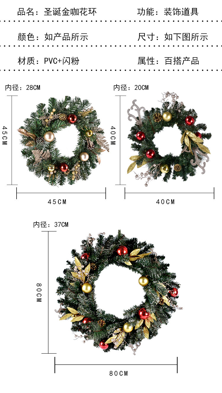 圣诞装饰品圣诞花环挂件橱窗香槟金酒店商场挂件40至80CM花环吊件