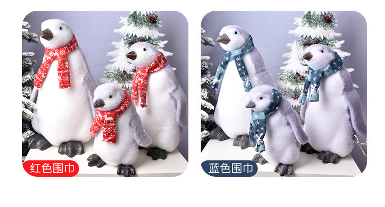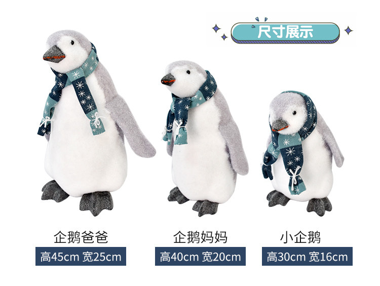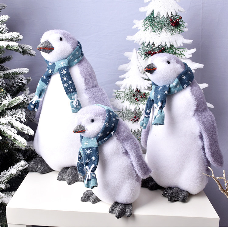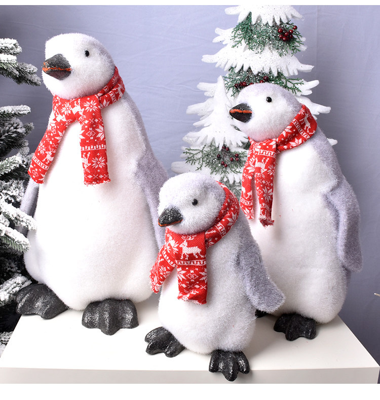 圣诞节装饰品圣诞橱窗用品新款植绒圣诞企鹅套装摆件大中小整套