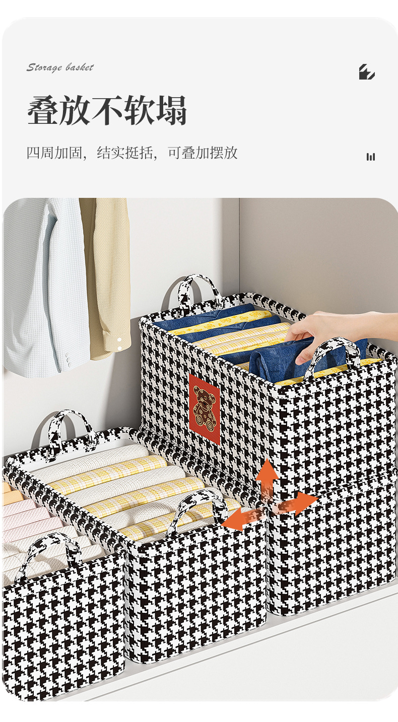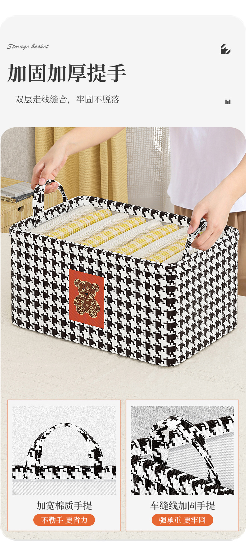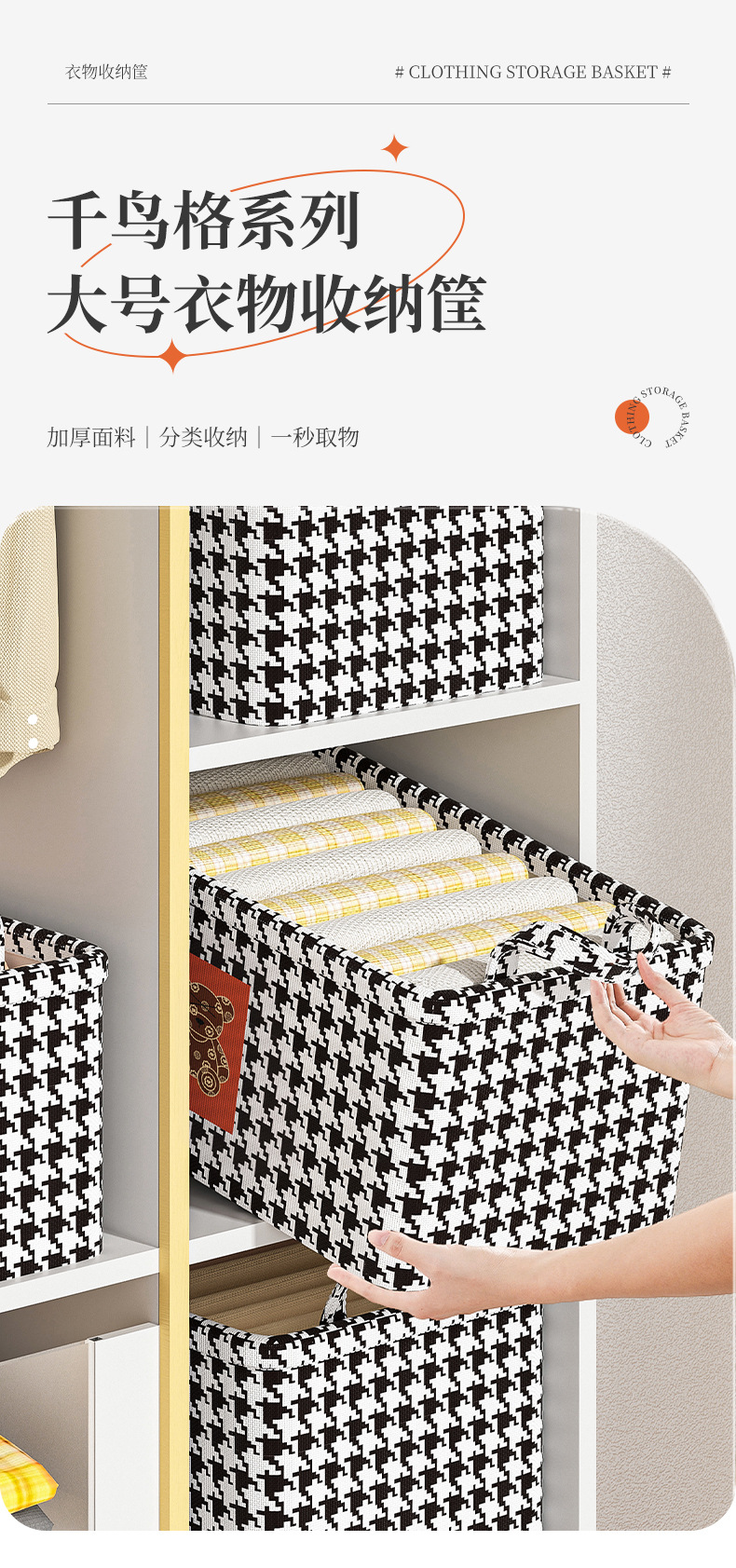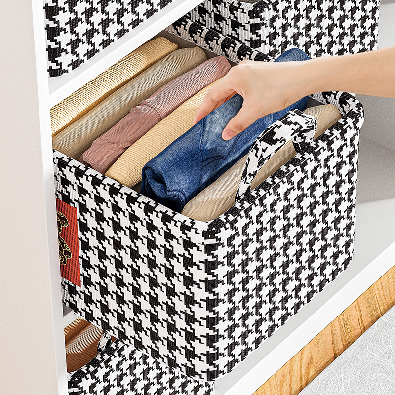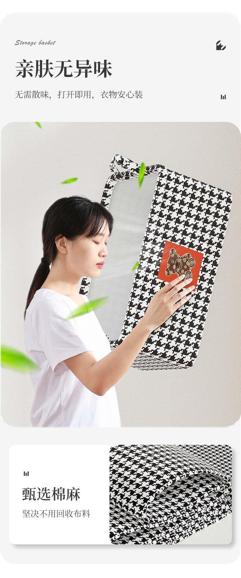 棉麻收纳盒千鸟格收纳箱大容量衣服收纳衣柜整理无盖可折叠收纳篮