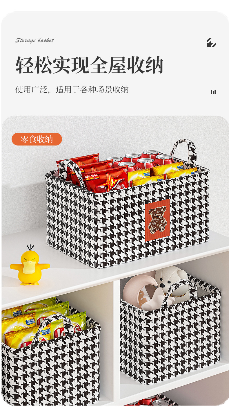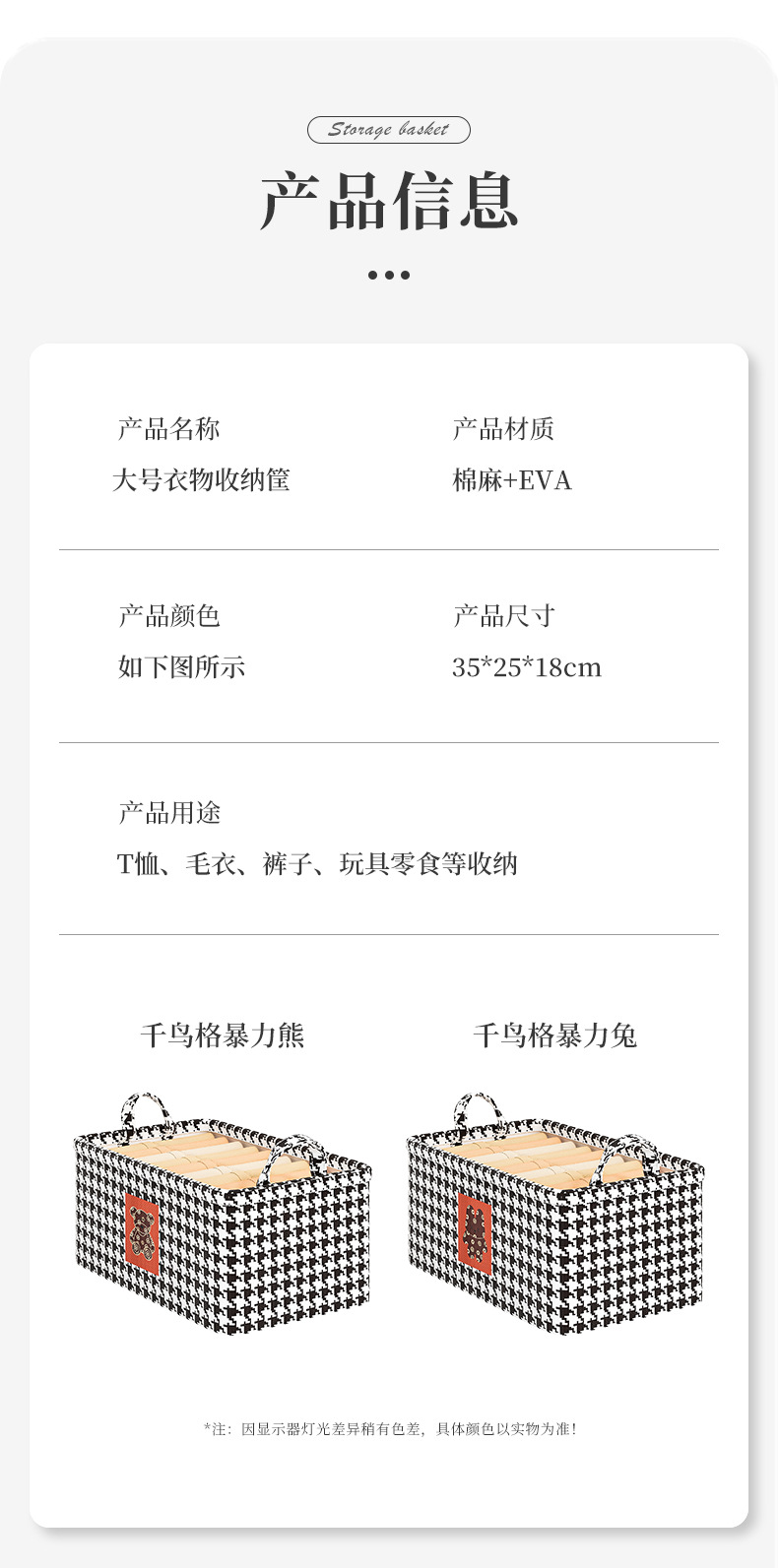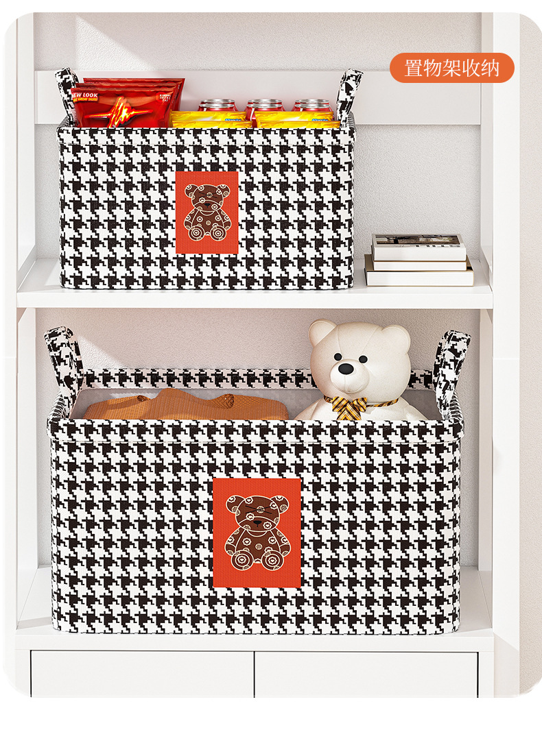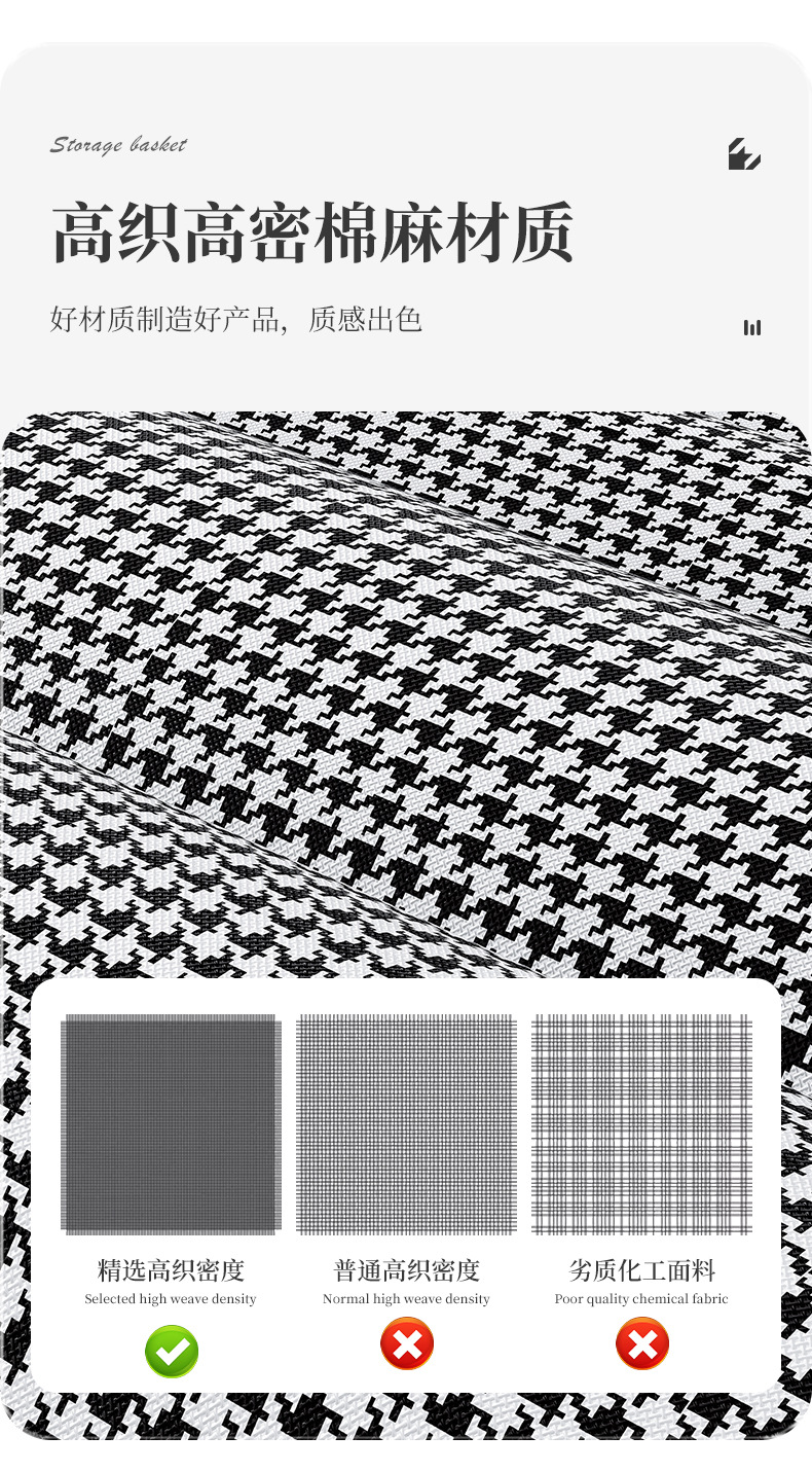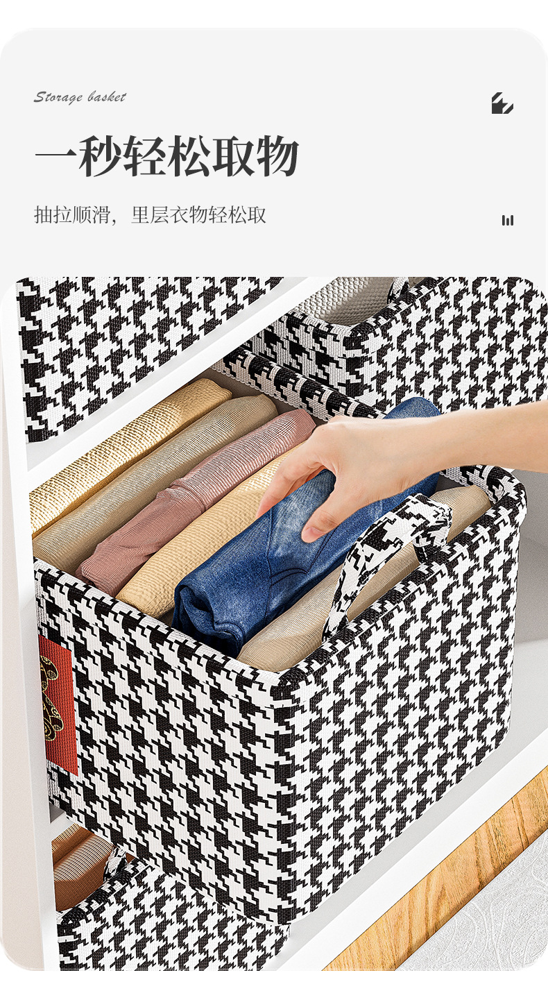 棉麻收纳盒千鸟格收纳箱大容量衣服收纳衣柜整理无盖可折叠收纳篮