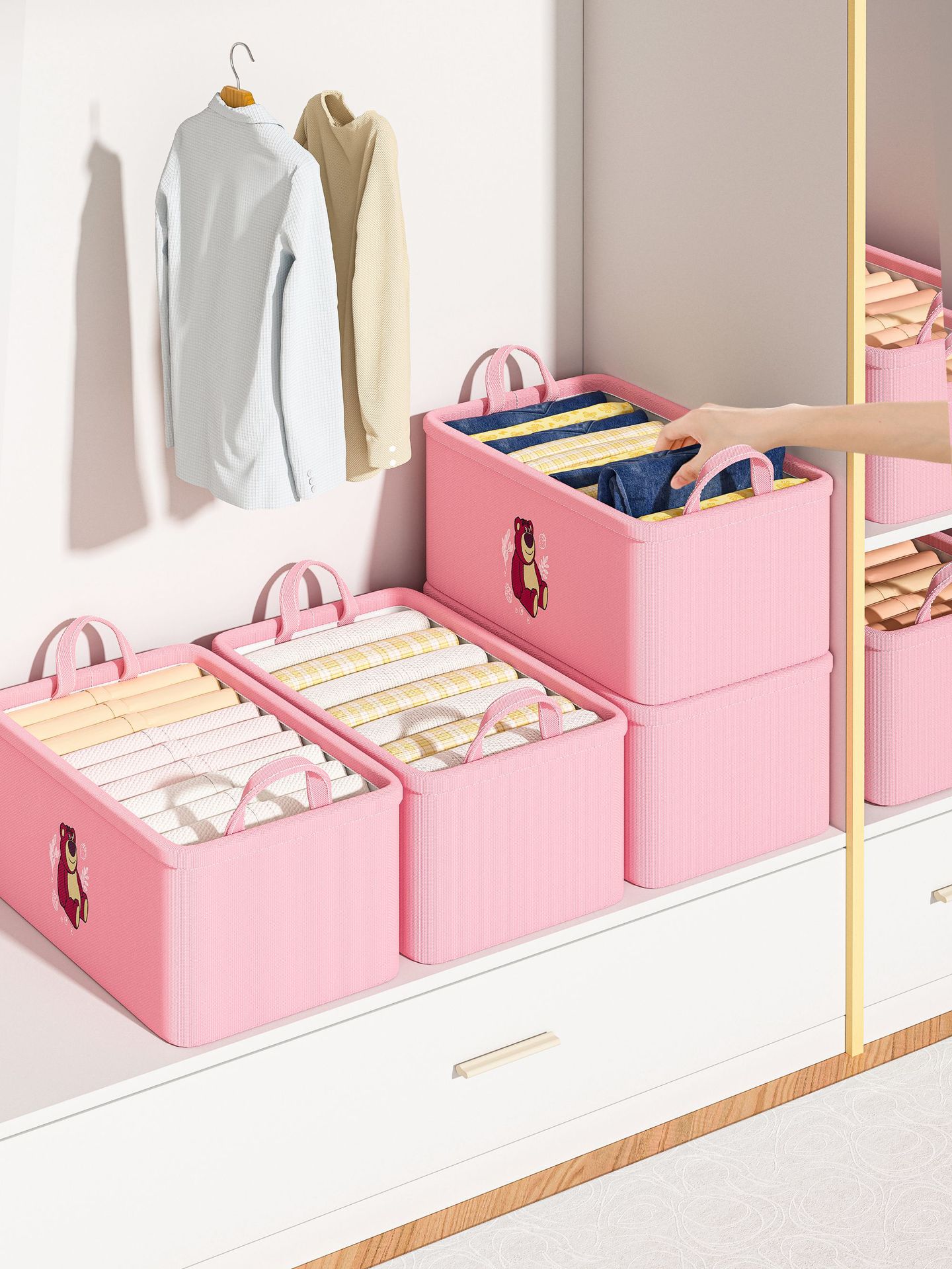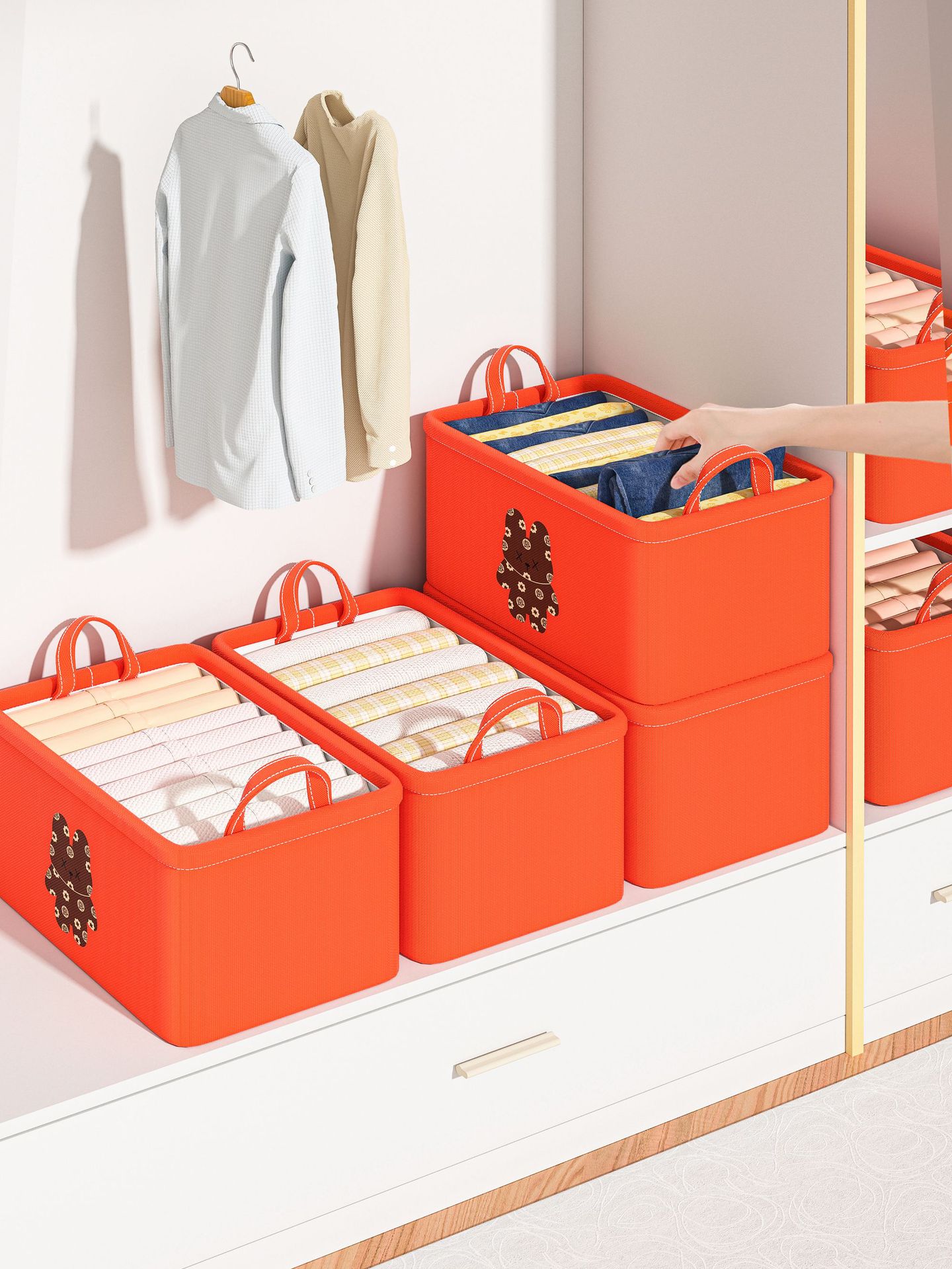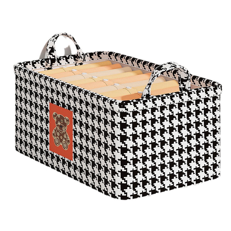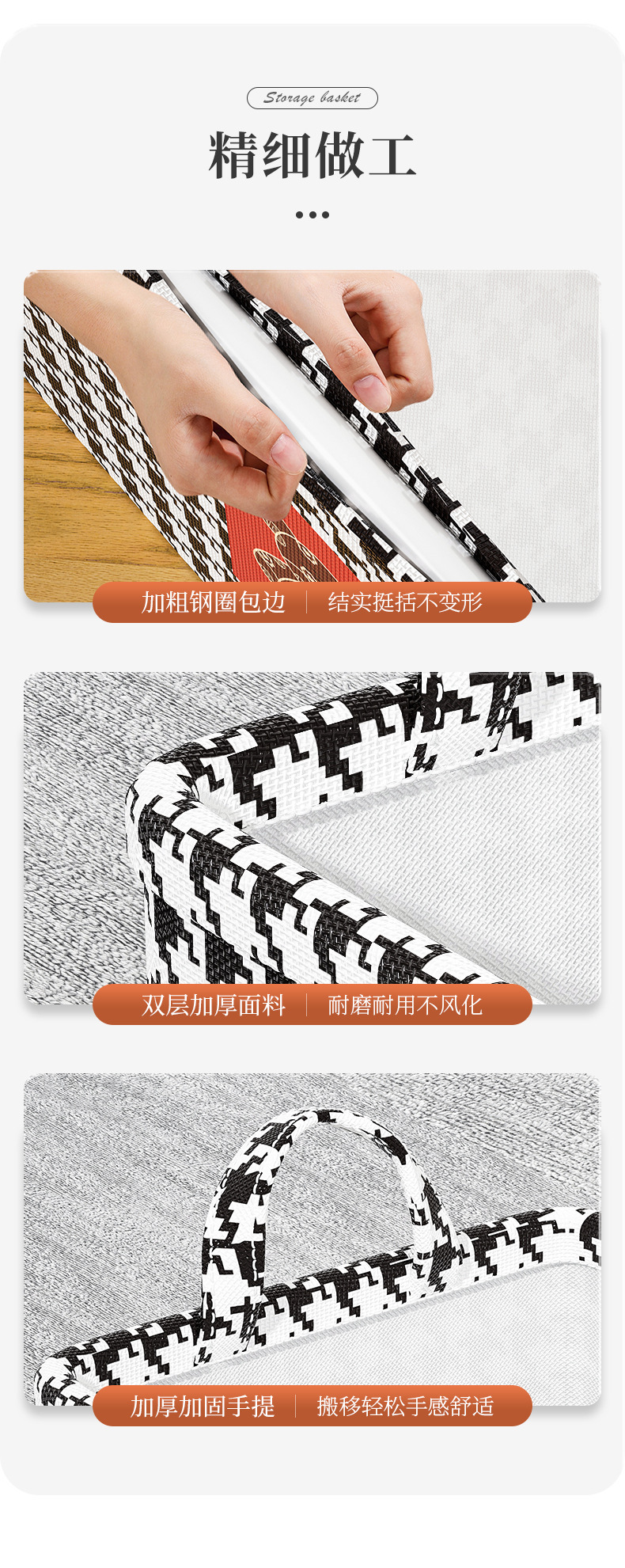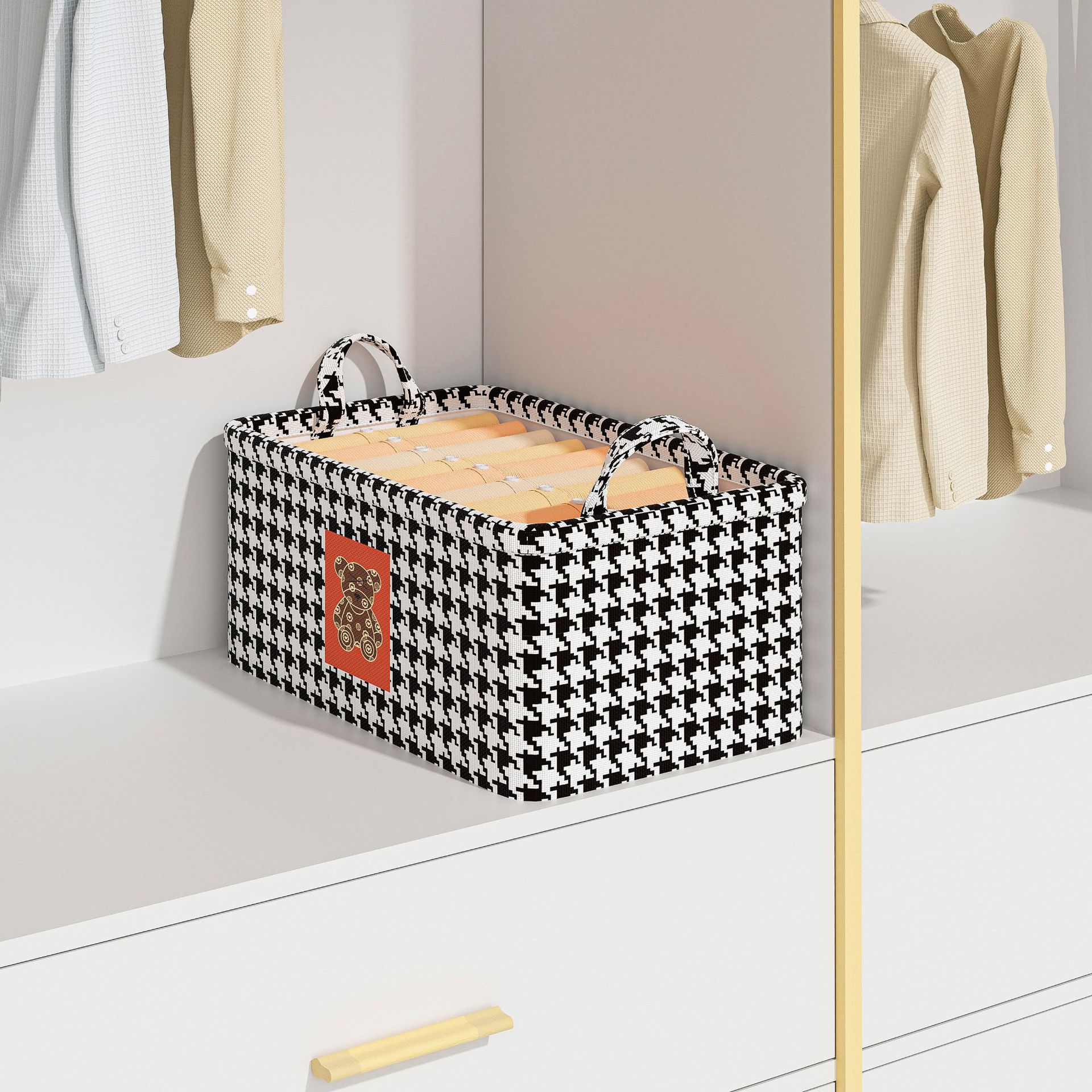 棉麻收纳盒千鸟格收纳箱大容量衣服收纳衣柜整理无盖可折叠收纳篮