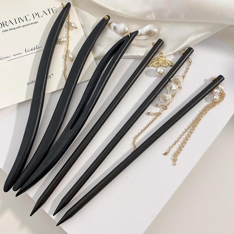 汉服古风木钗发簪女生简约后脑勺丸子头懒人盘发复古步摇旗袍发饰