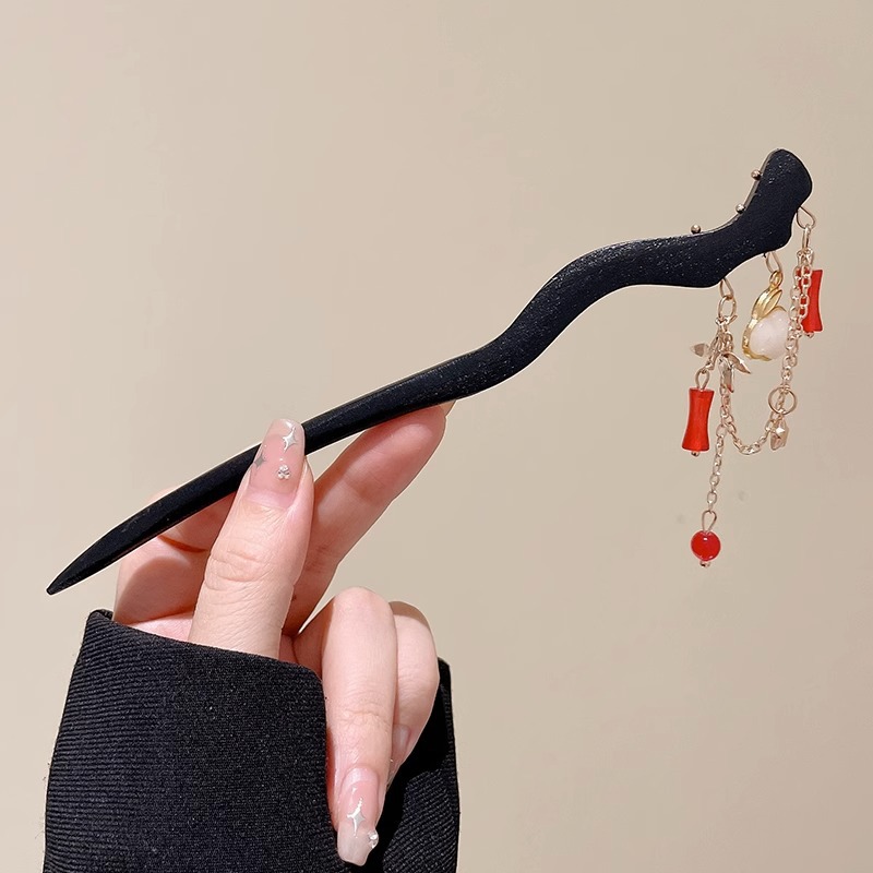 古风流苏发簪女夏天高级感汉服头饰新中式木质发钗子步摇簪子发饰