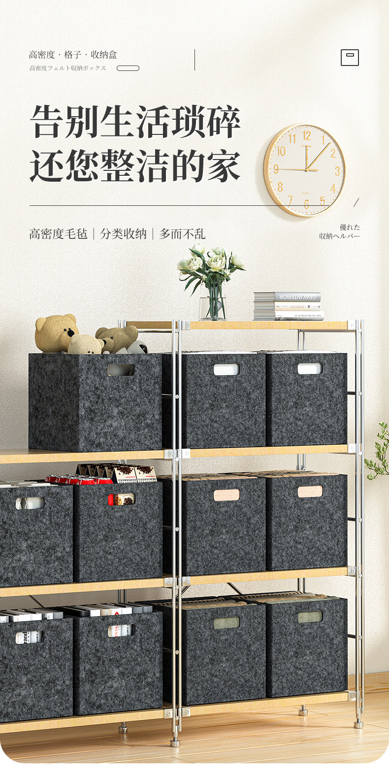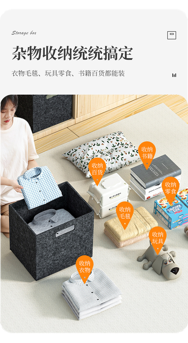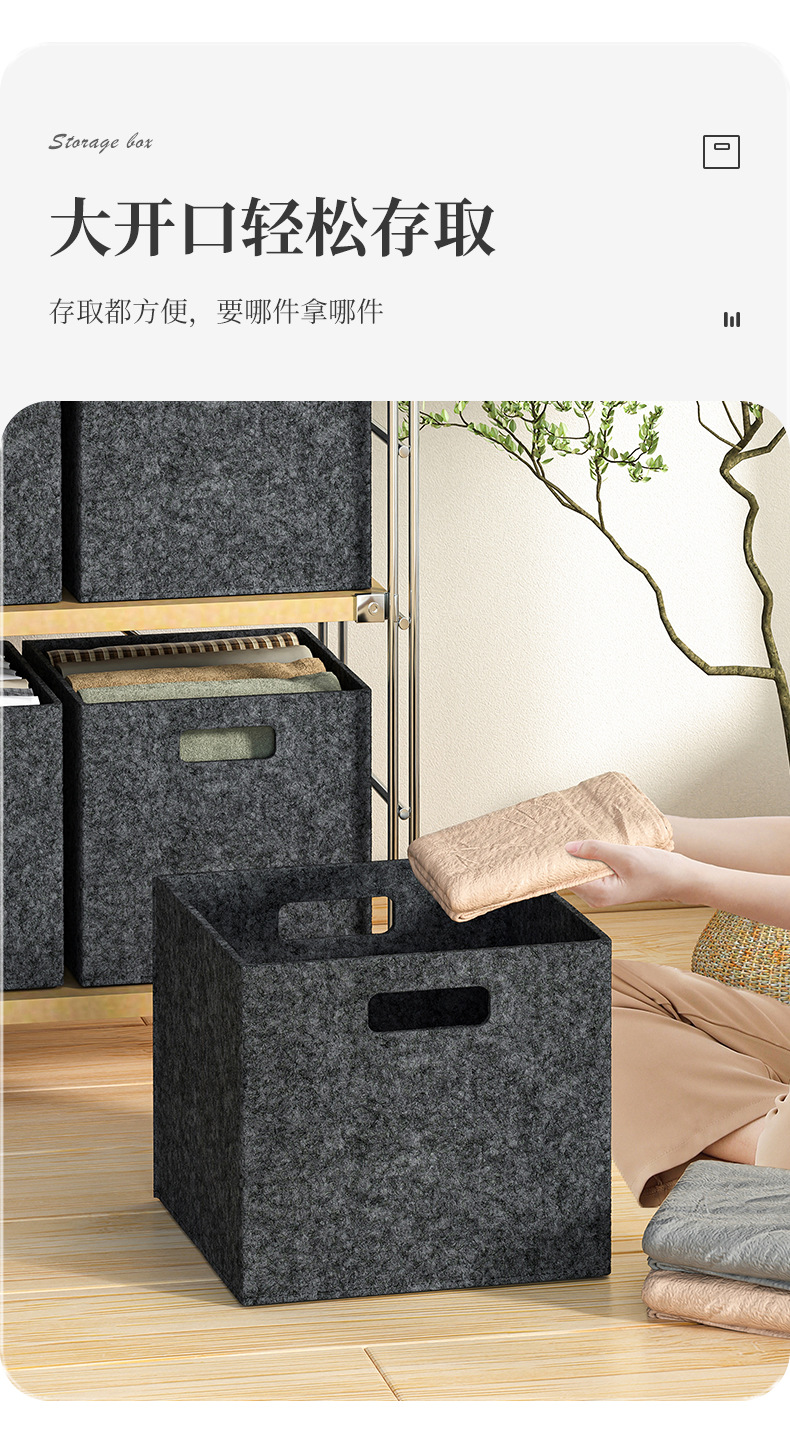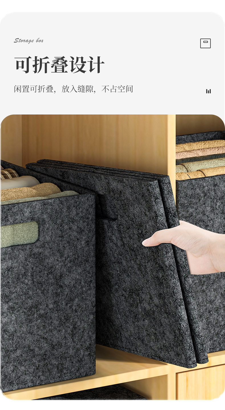 毛毡收纳盒衣柜整理收纳大容量短袖衣服玩具收纳篮双提手可折叠