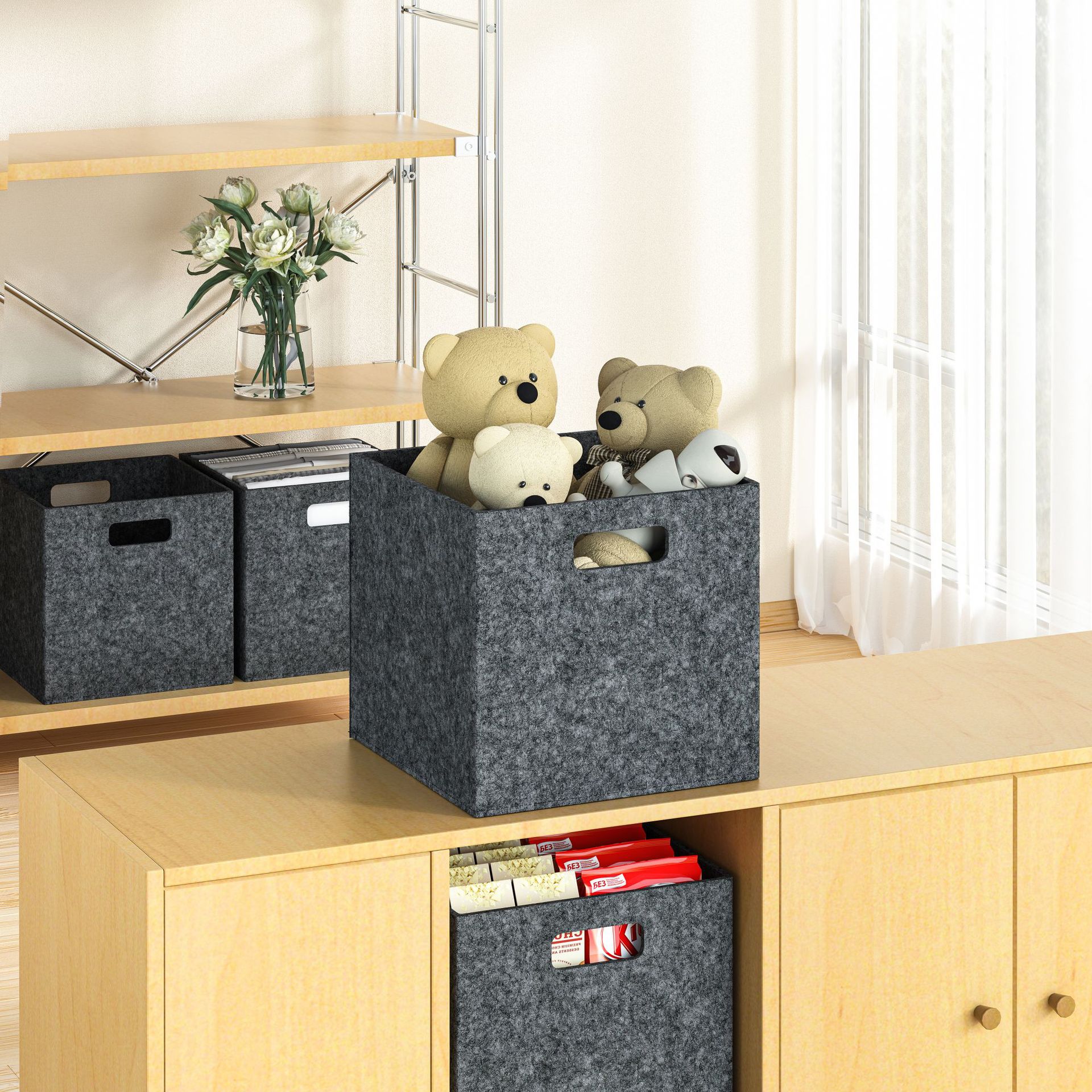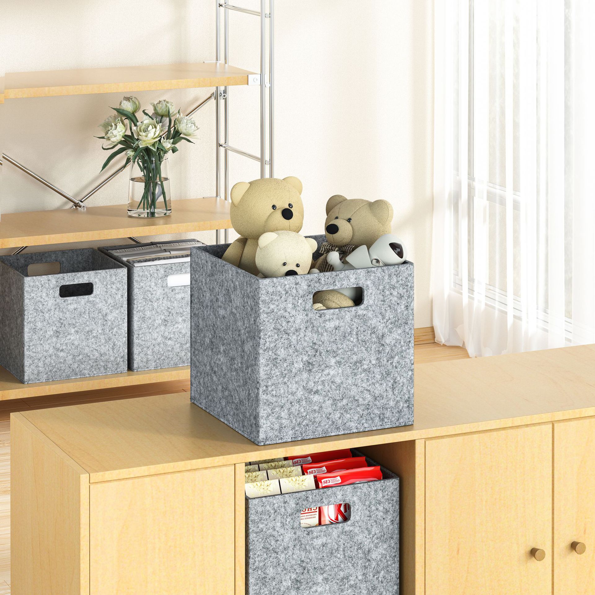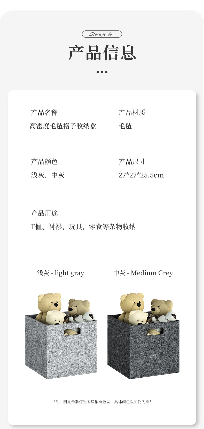 毛毡收纳盒衣柜整理收纳大容量短袖衣服玩具收纳篮双提手可折叠