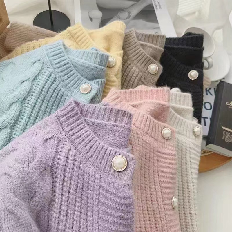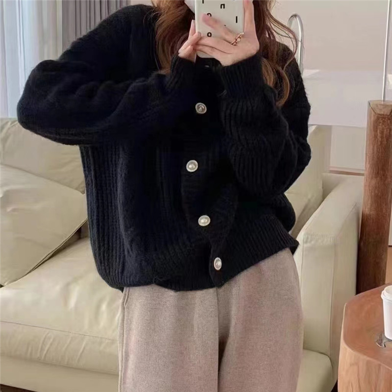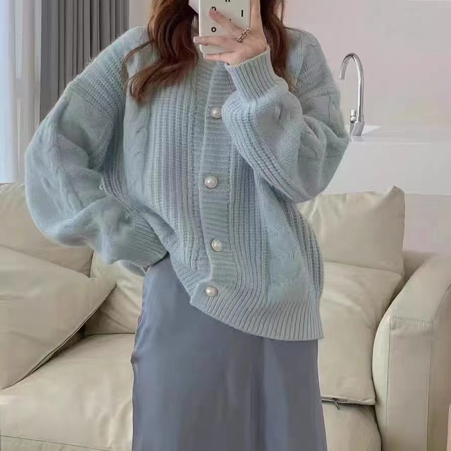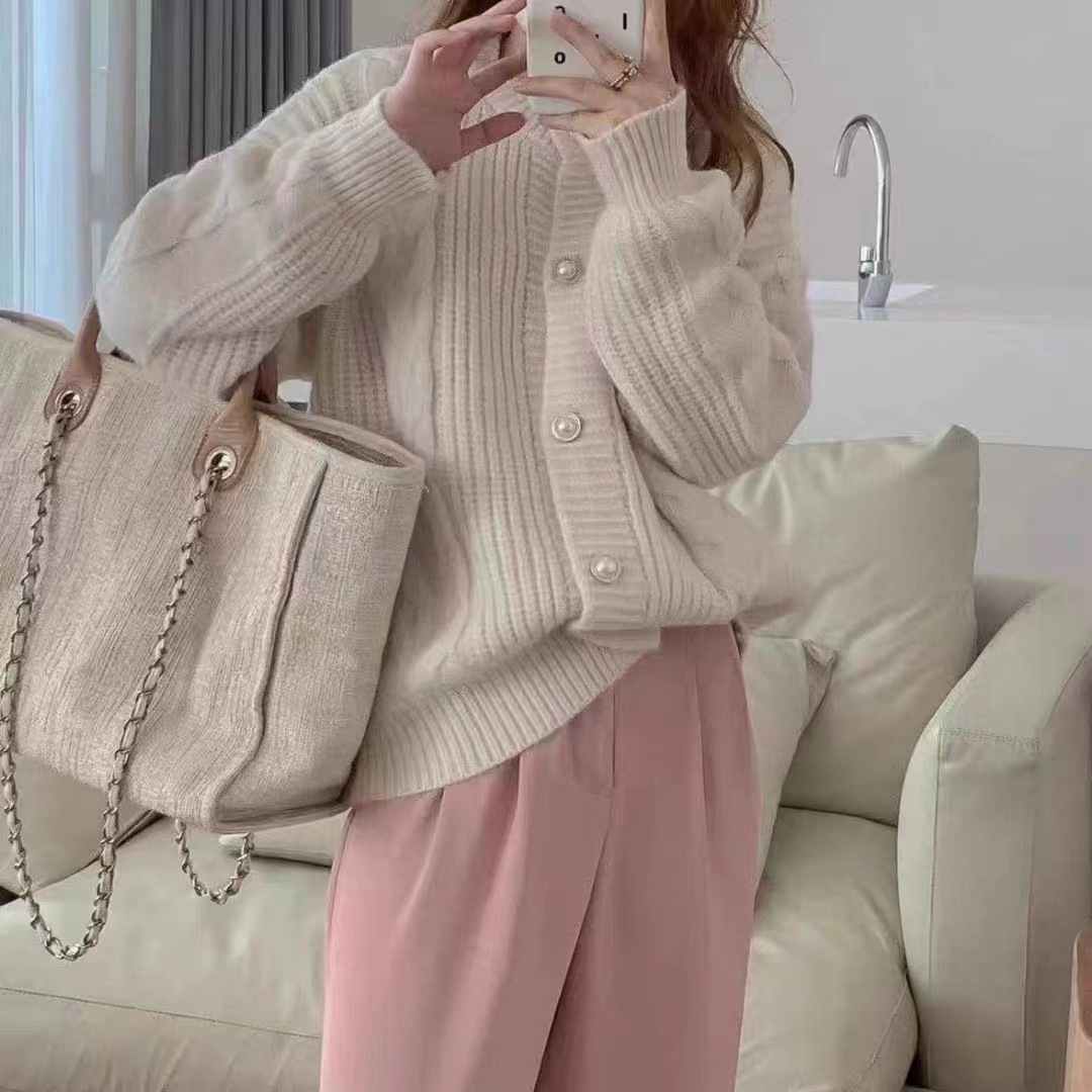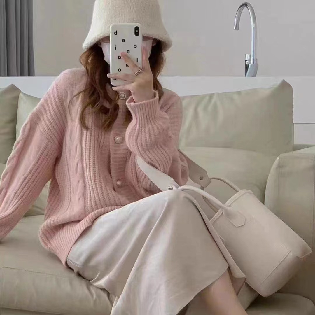 粉色麻花针织开衫女春秋新款2023爆款宽松外穿慵懒风上衣毛衣外套