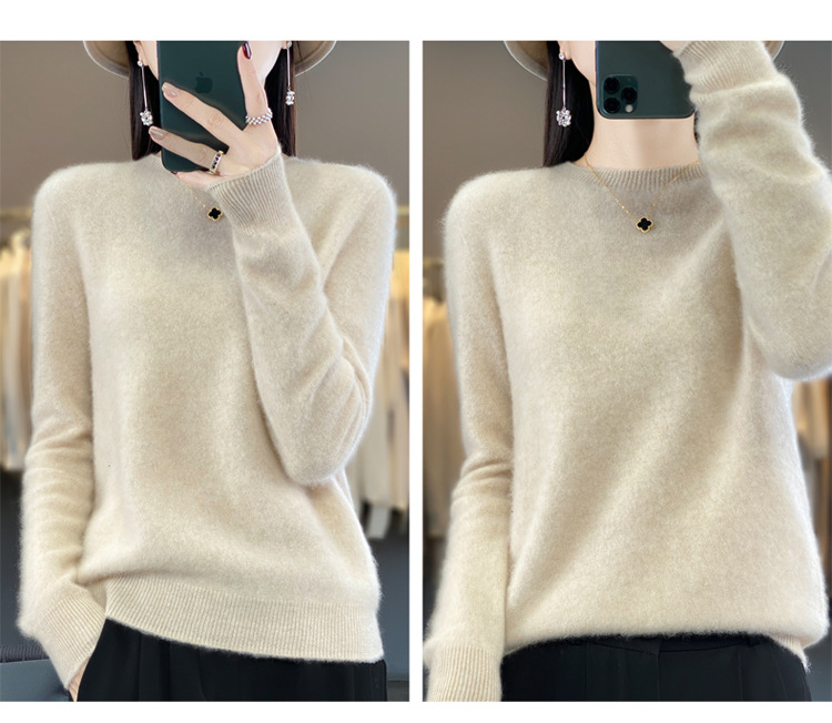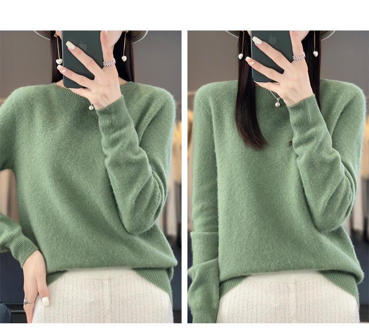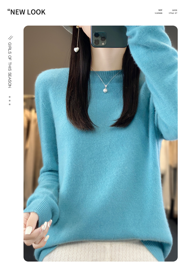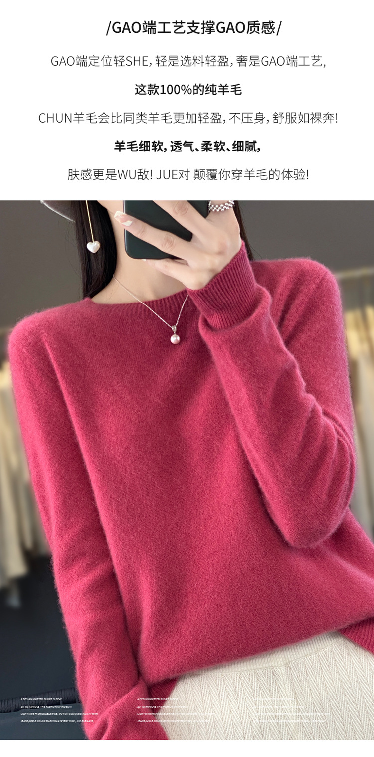 一线成衣圆领羊毛衫女亲肤简约针织衫秋冬新款无缝一体打底毛衣
