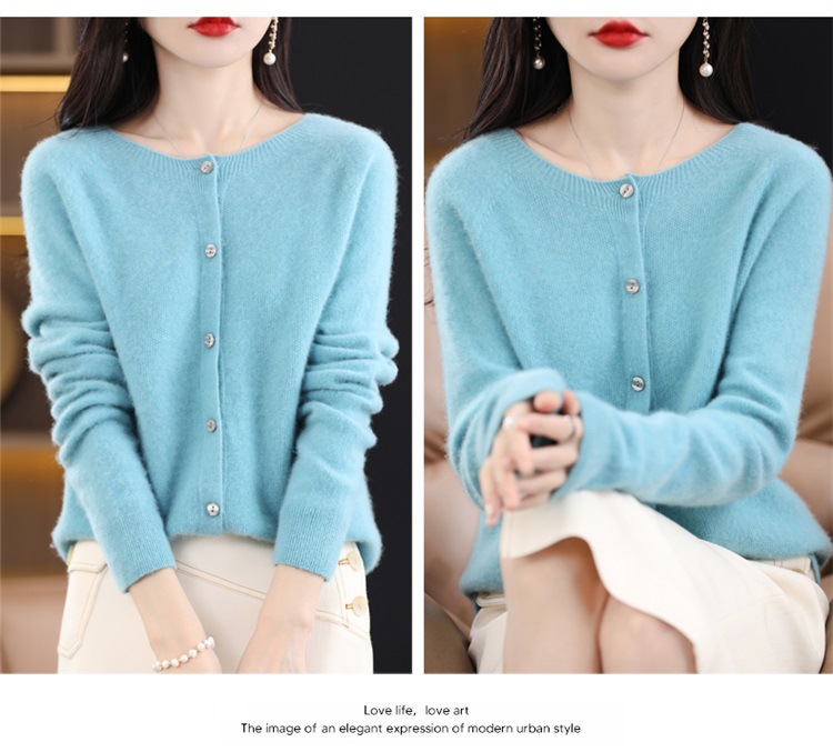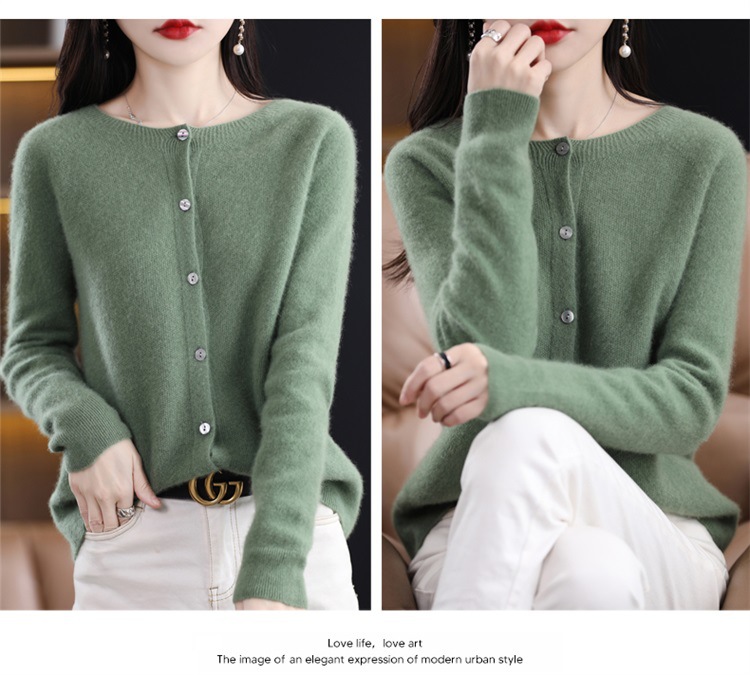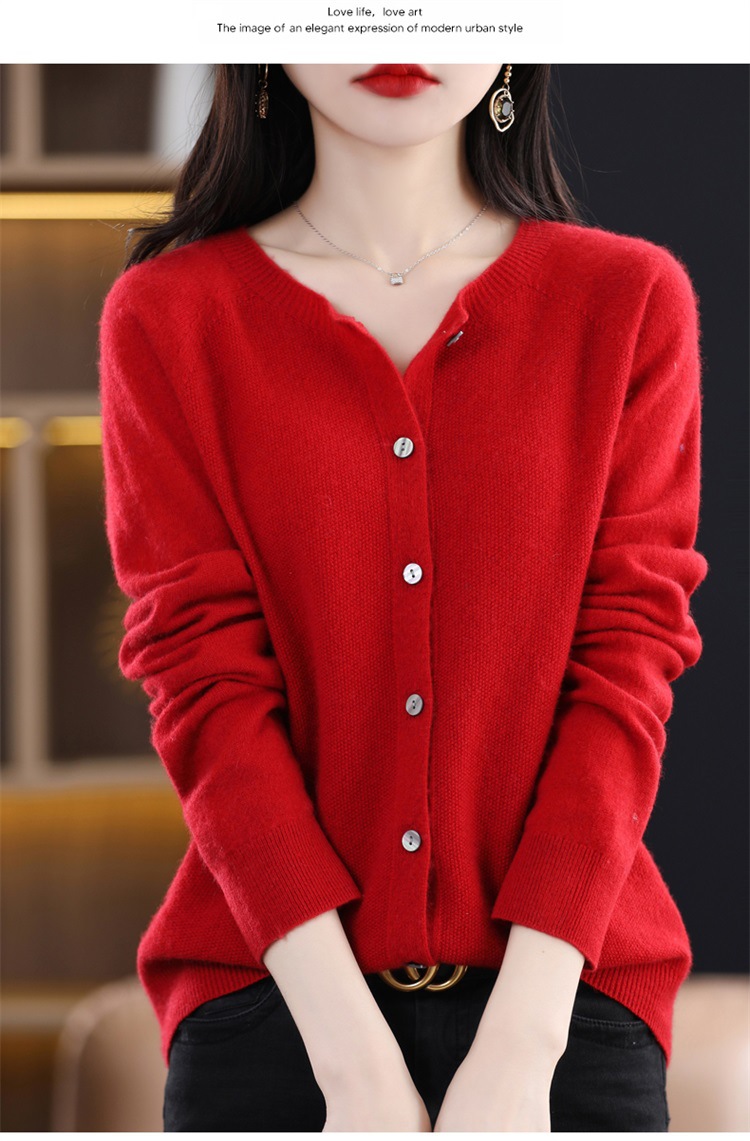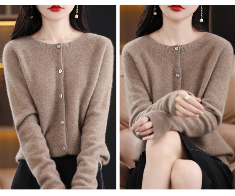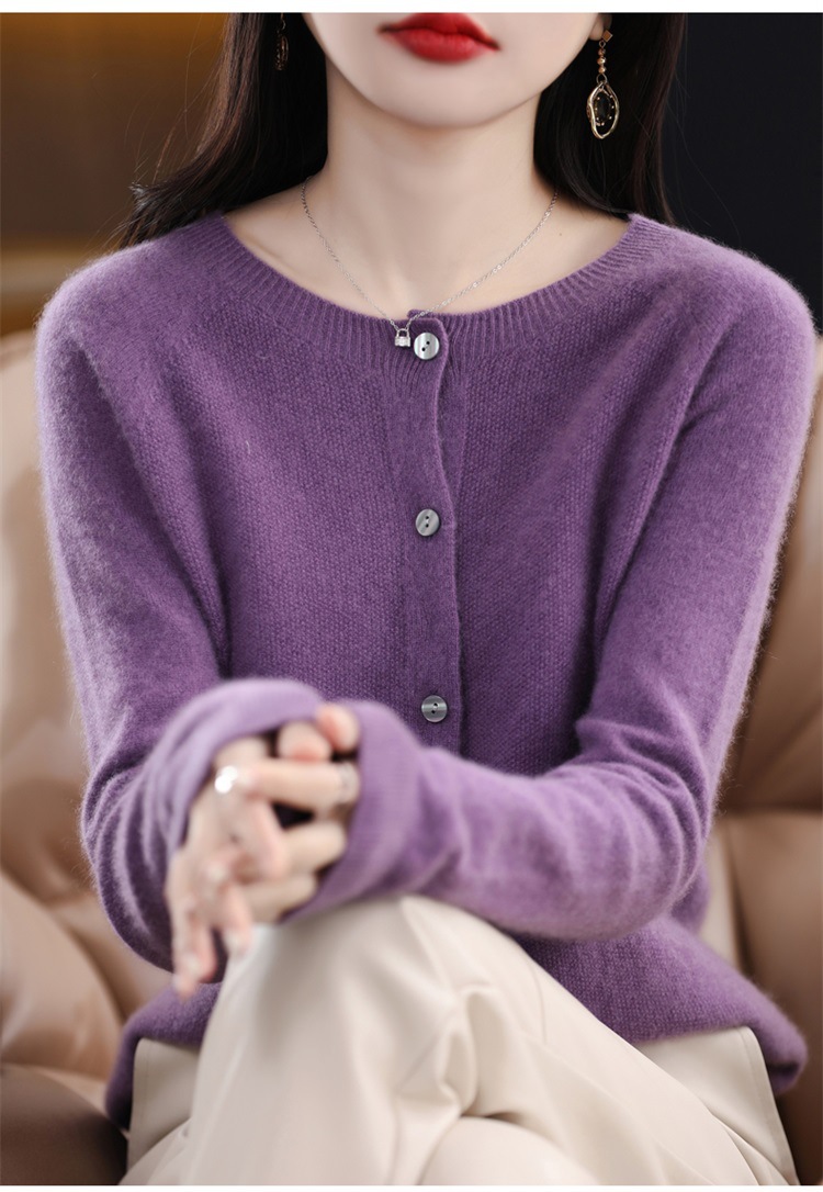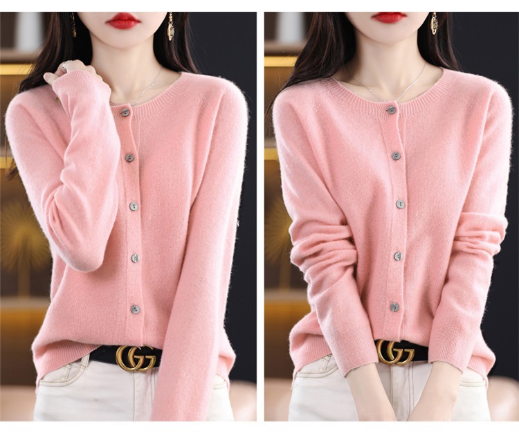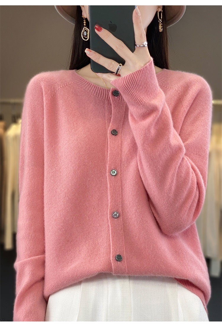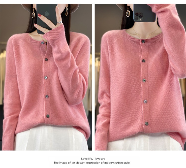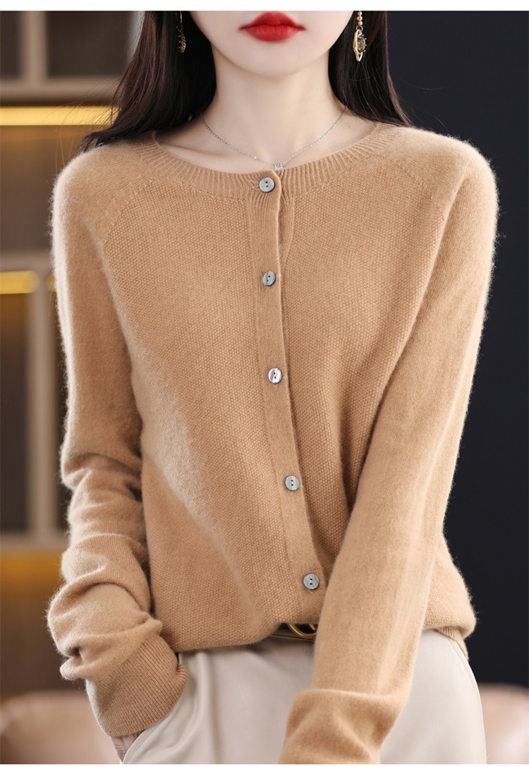 一线成衣桂花针开衫100%羊毛针织衫女春秋新款气质简约外套外搭