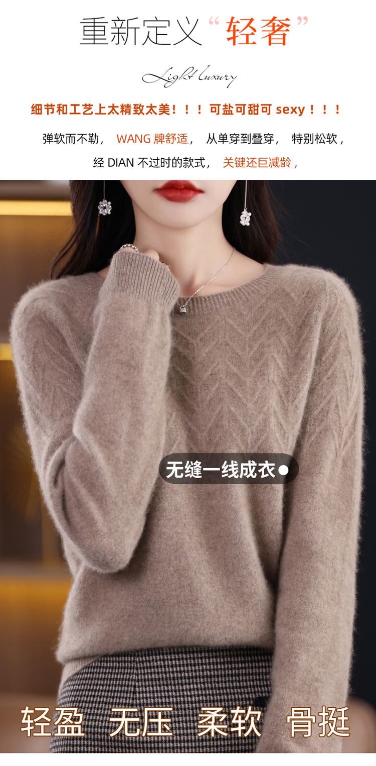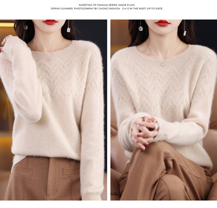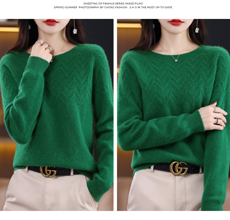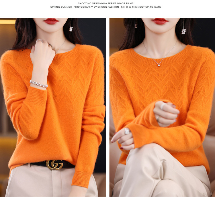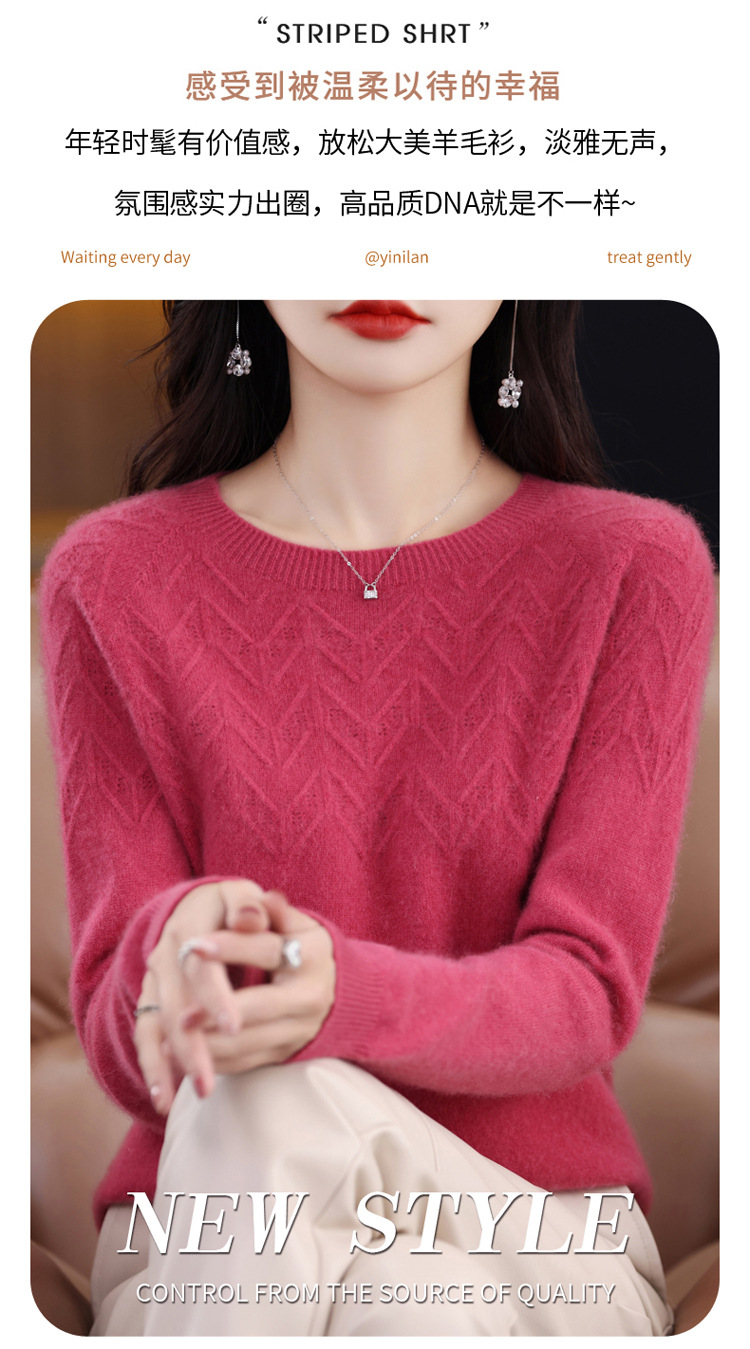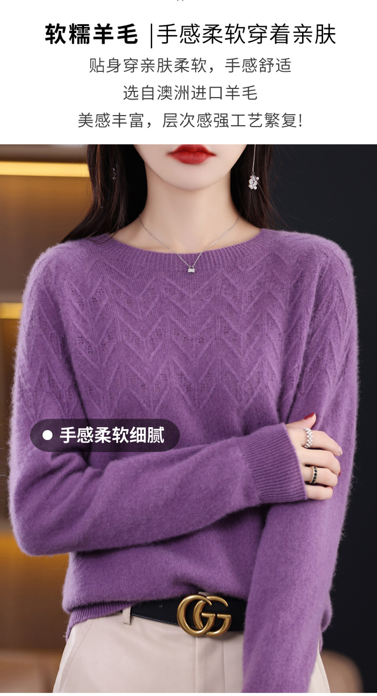 一线成衣鱼骨花型羊毛衫女春秋显瘦针织宽松毛衣长袖纯色打底衫
