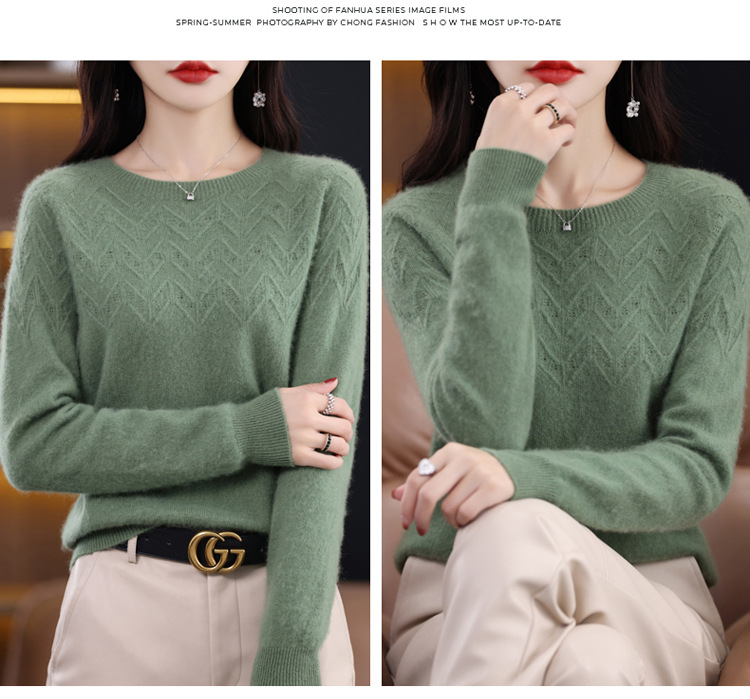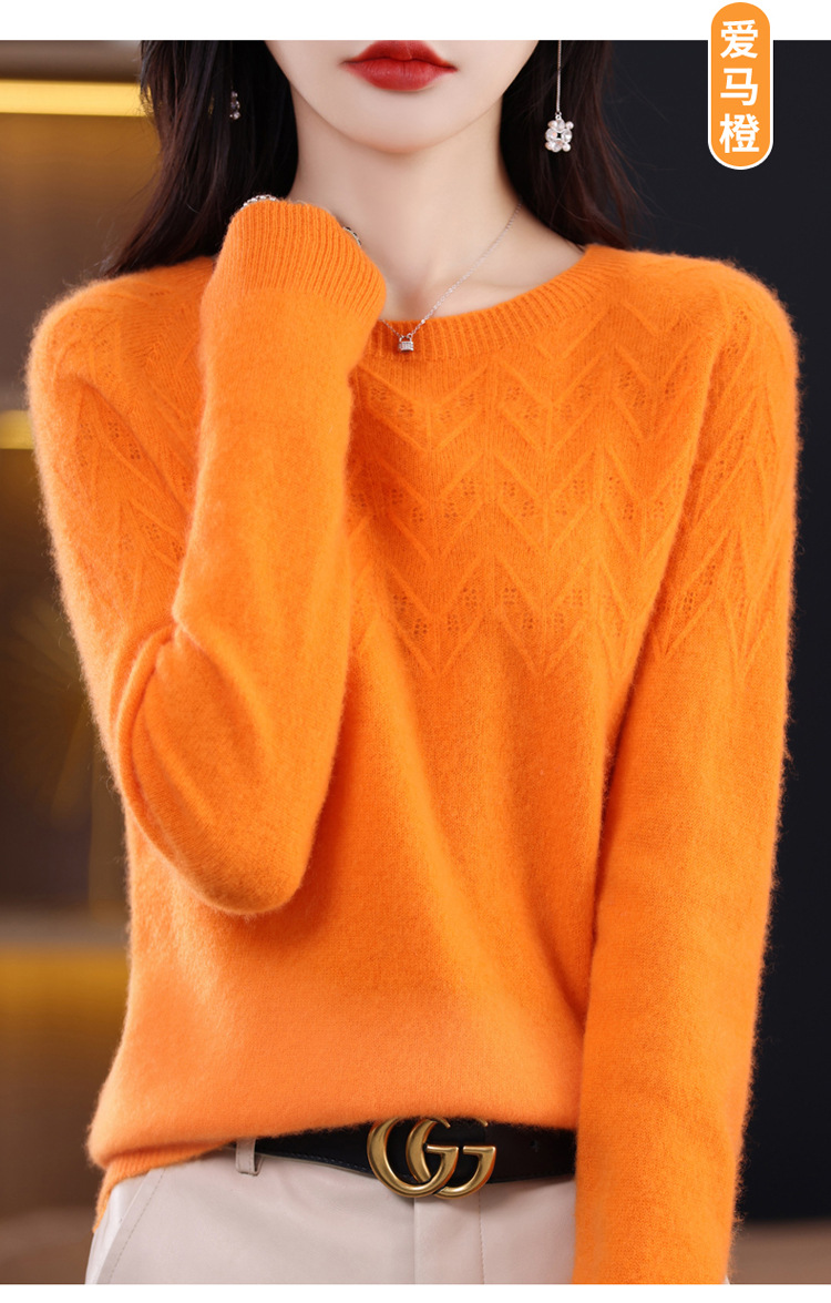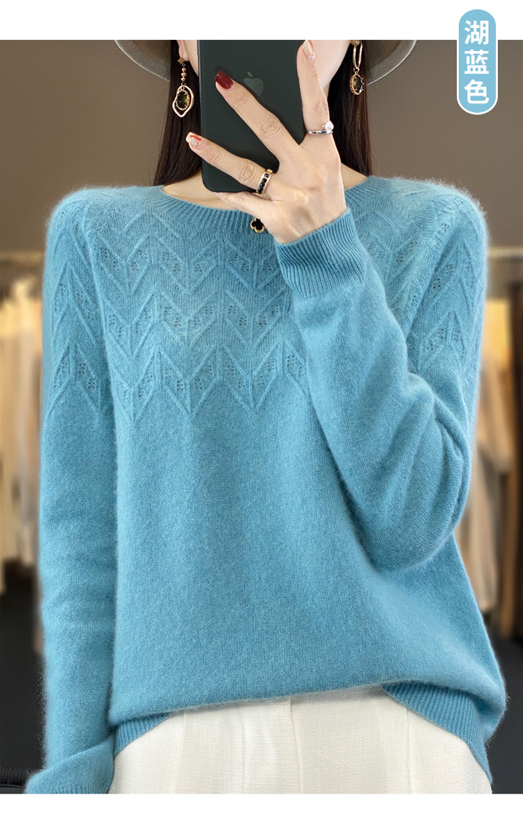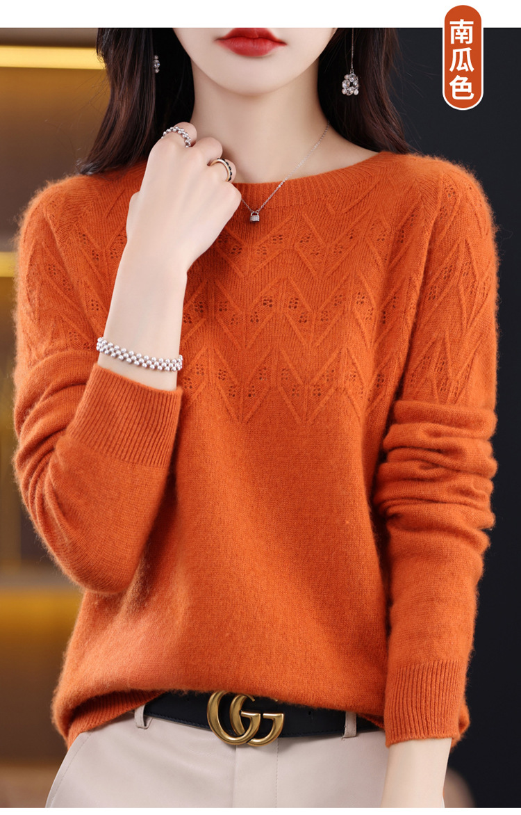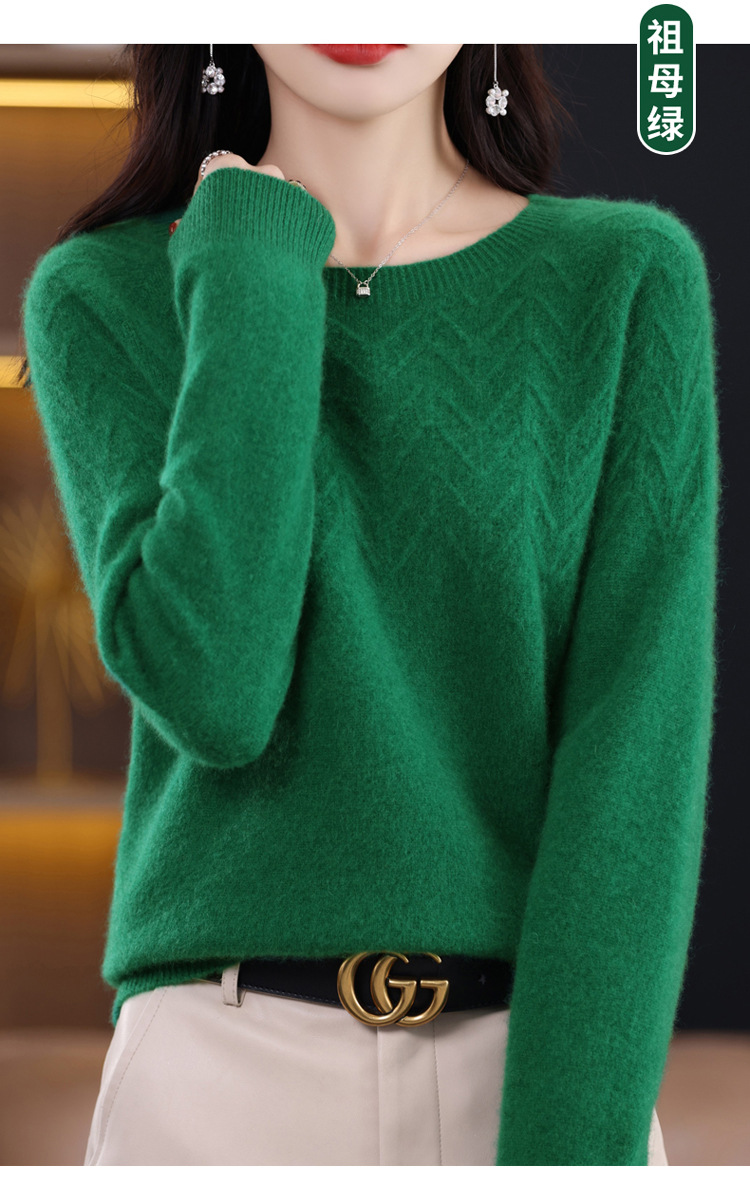 一线成衣鱼骨花型羊毛衫女春秋显瘦针织宽松毛衣长袖纯色打底衫