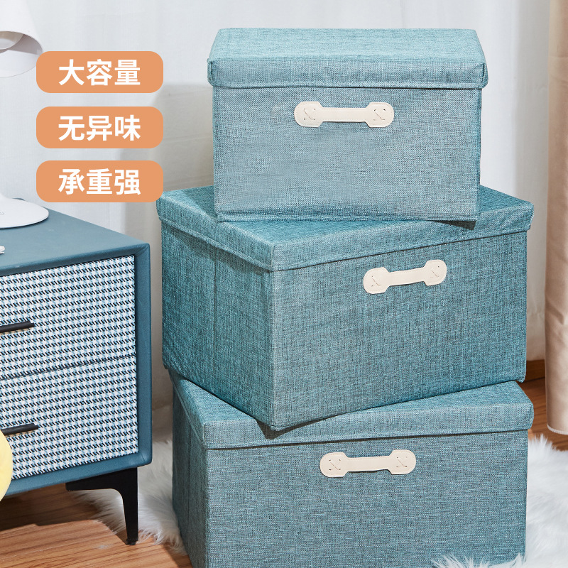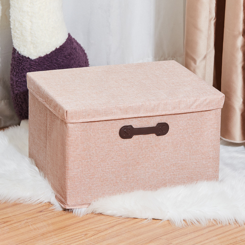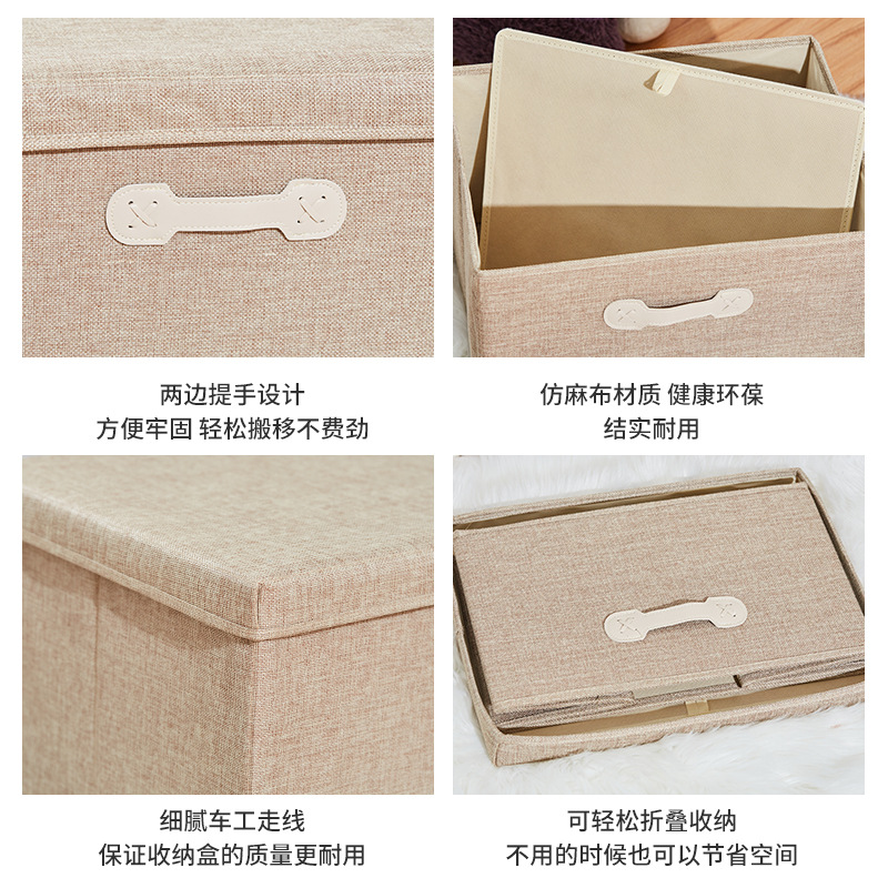 棉麻收纳盒整理盒可折叠杂物带盖户外旅行衣物便携防尘收纳箱