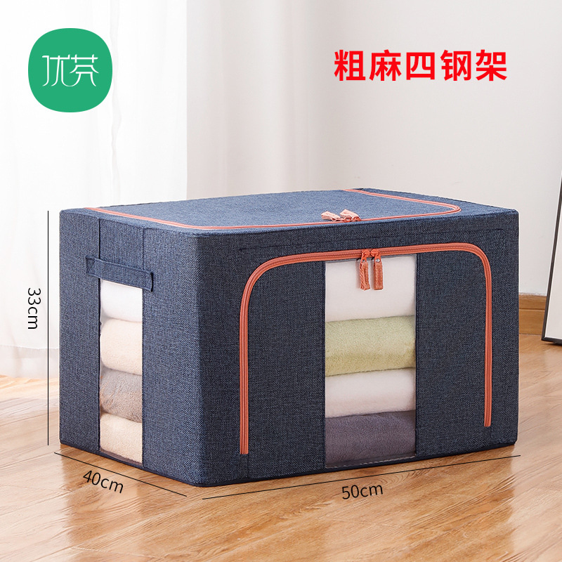 粗麻收纳箱可折叠整理收纳盒玩具棉被衣服衣柜搬家可视百纳箱