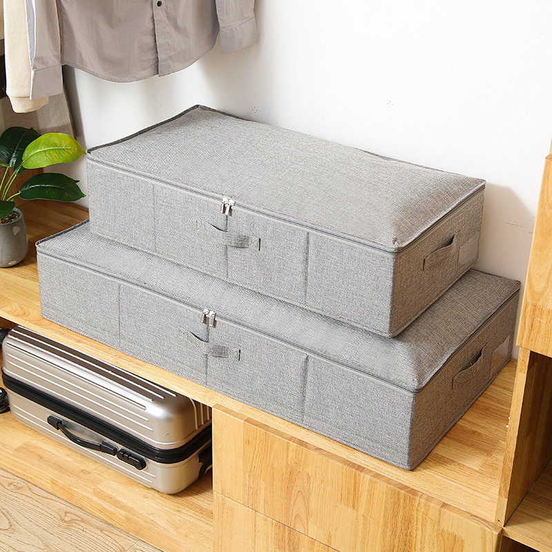 亚马逊棉麻床底收纳箱扁平可折叠衣服整理箱大容量被子收纳储物箱