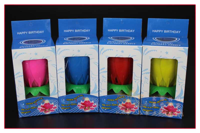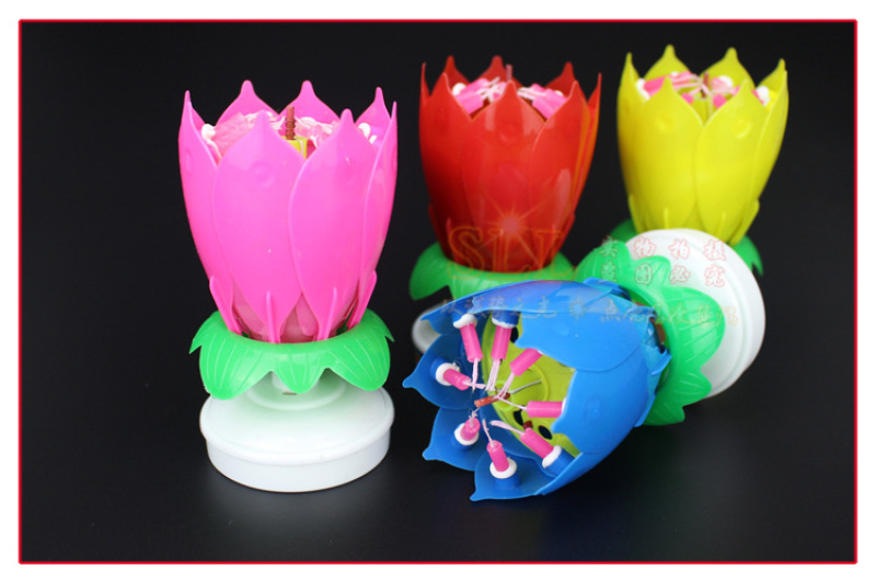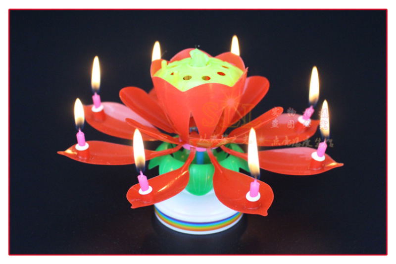 节日派对用品莲花音乐蜡烛双层开花生日蛋糕平底旋转电子荷花蜡烛