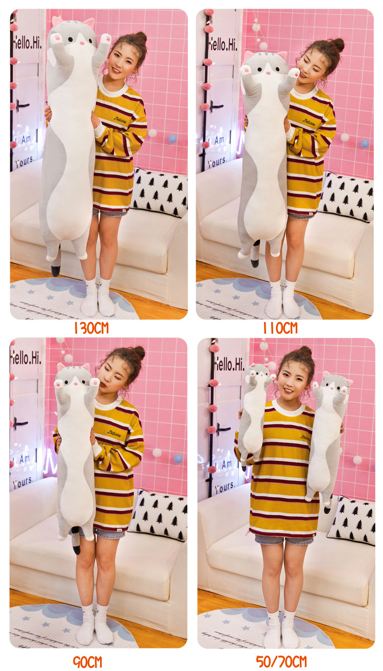 外贸跨境可爱猫咪毛绒玩具公仔长条猫咪睡觉抱枕懒人超软玩偶批发