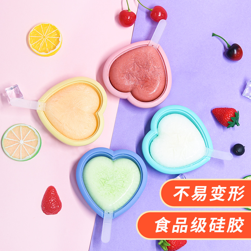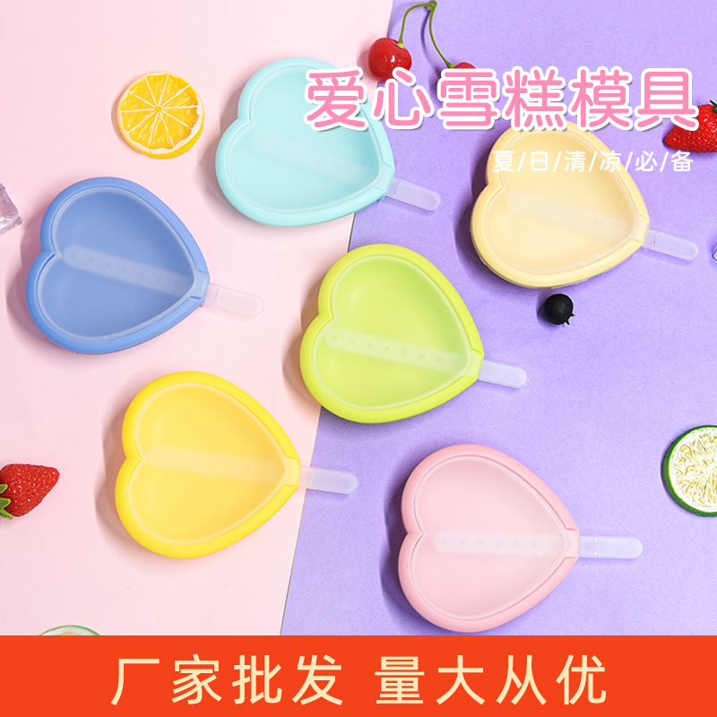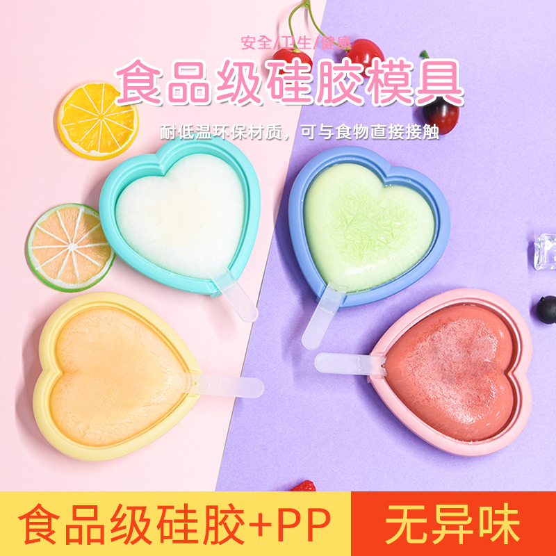 桃心款 小号 硅胶带棍雪糕模 带盖雪糕盒DIY自制心形冰淇淋模冰格