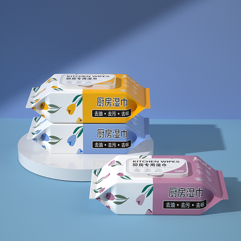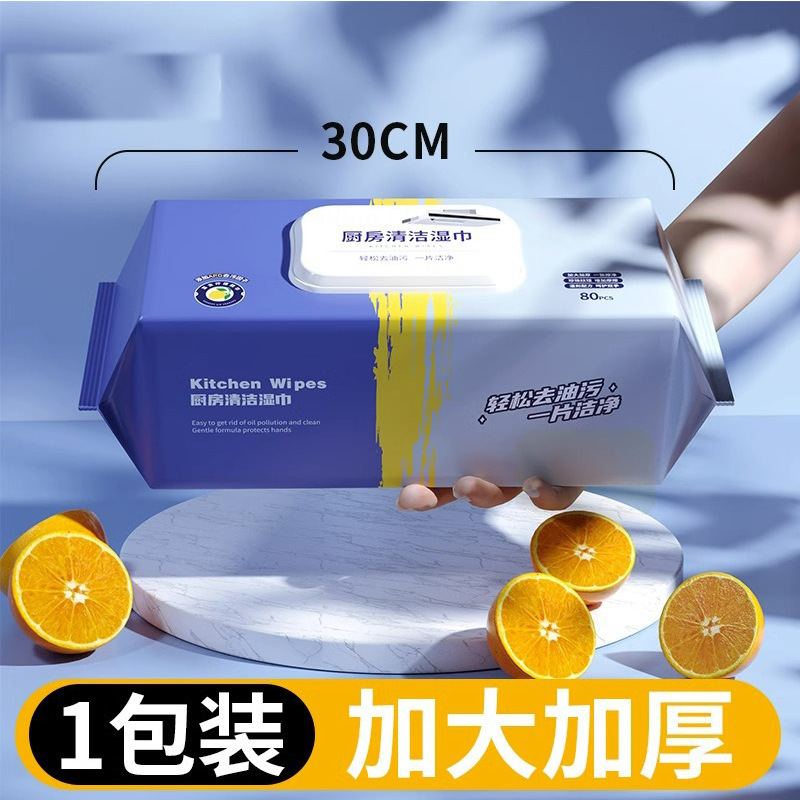 厨房清洁湿巾工厂批发加厚大包80抽家用清洁湿纸巾一次性厨房湿巾