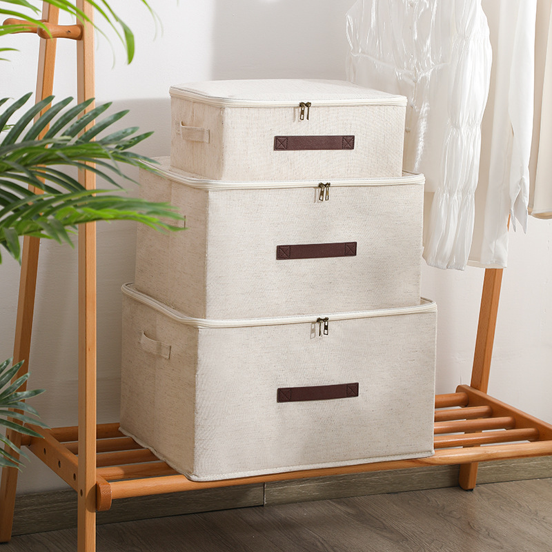 日系涤棉拉链收纳箱布艺折叠搬家整理箱卧室衣柜衣服被子收纳箱子