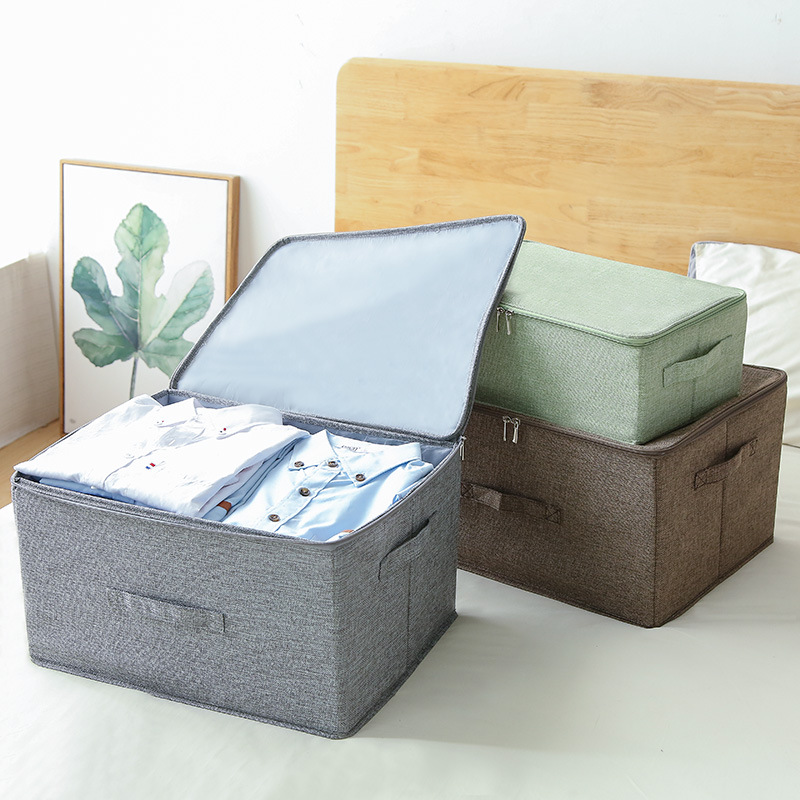 外贸棉麻拉链收纳箱衣柜衣物收纳整理箱布艺收纳盒储物箱一件代发