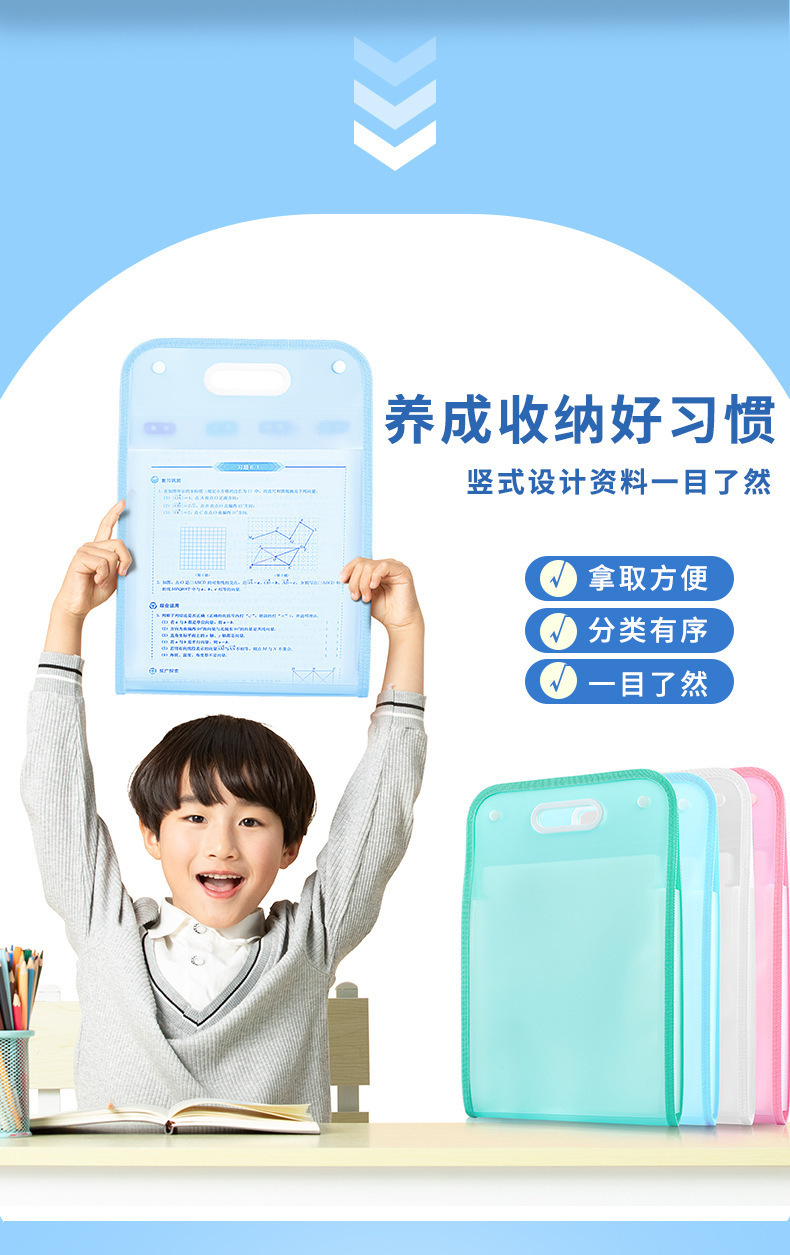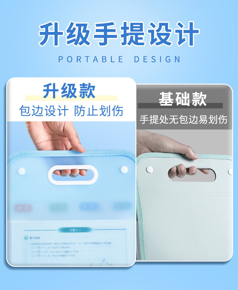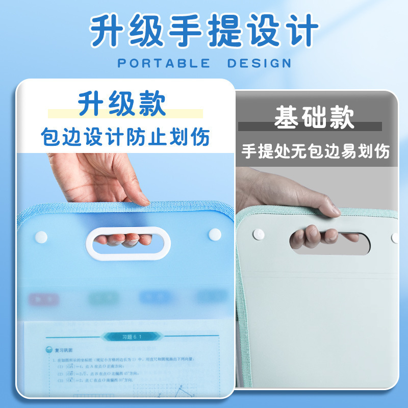 竖式包边风琴包pp半透明文件夹手提公文包学生试卷商务办公文件袋