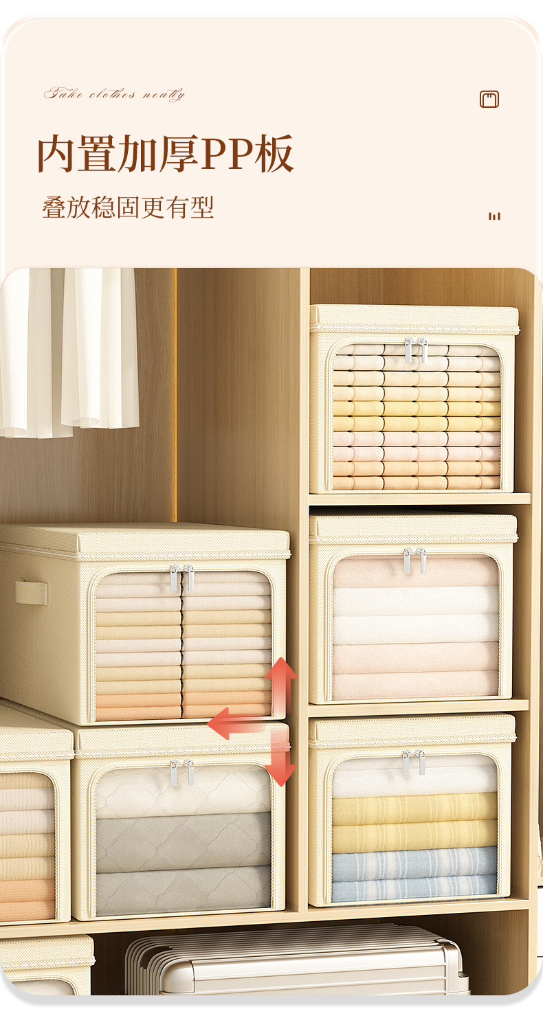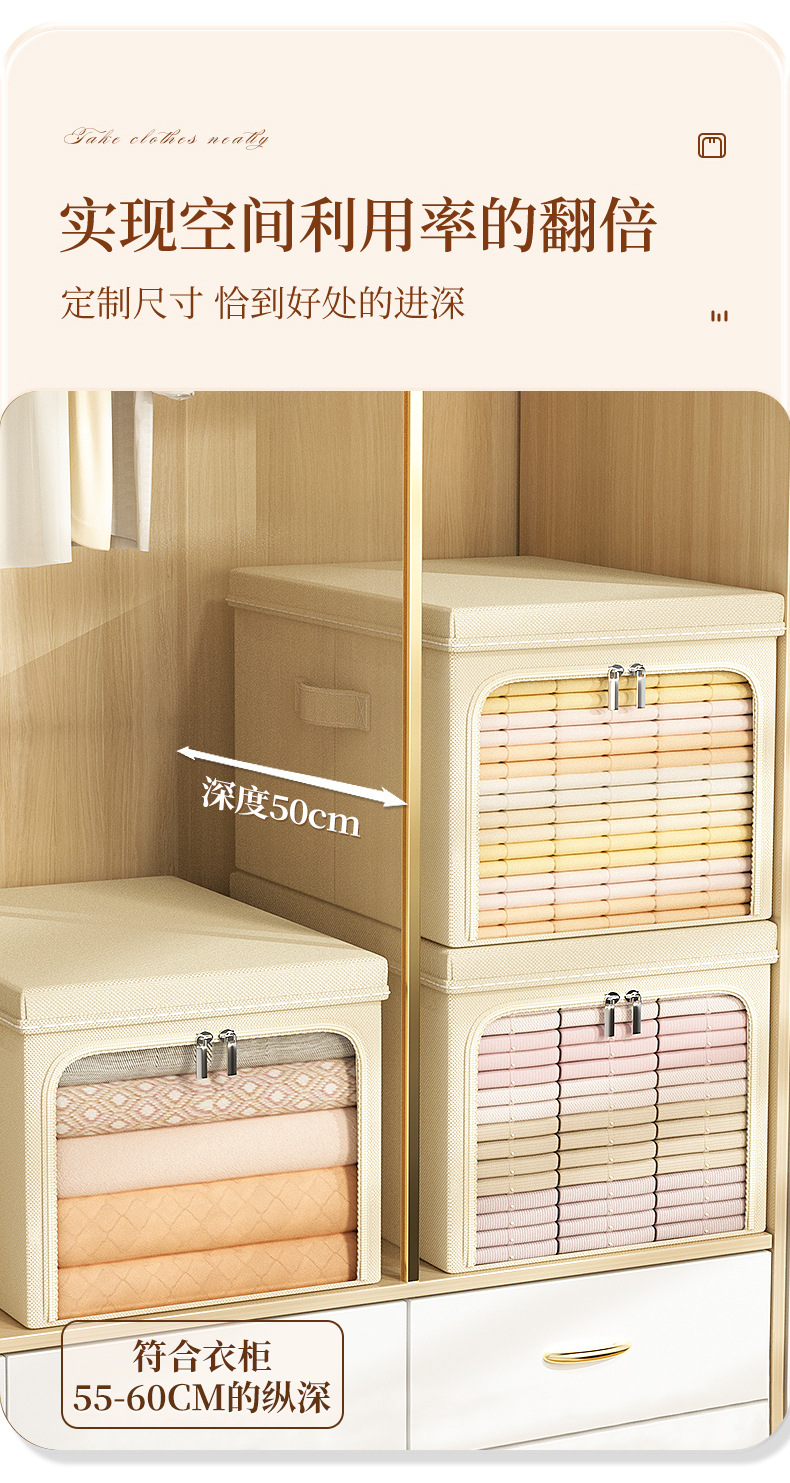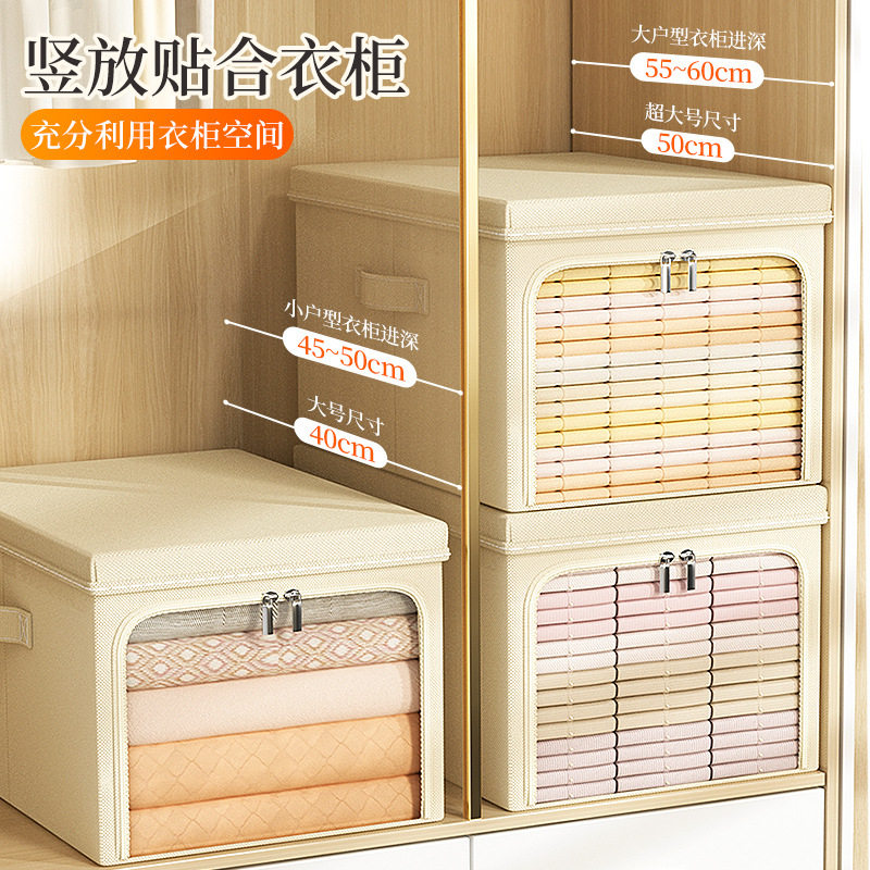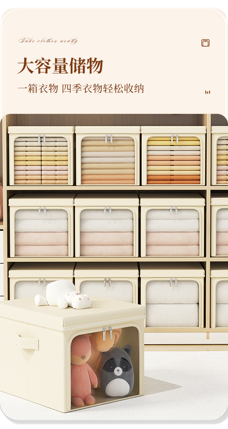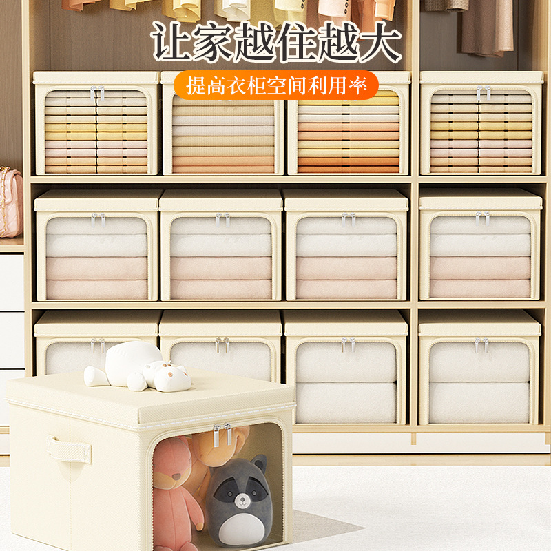 新款衣服收纳箱衣柜装衣物被子整理箱布艺可折叠筐硬盖可视百纳箱