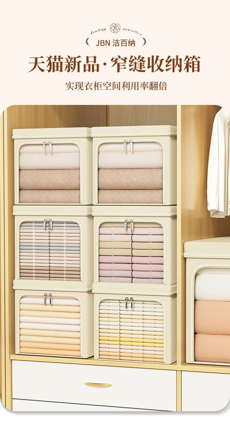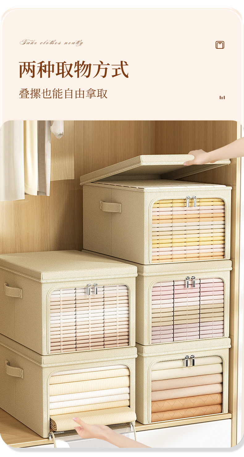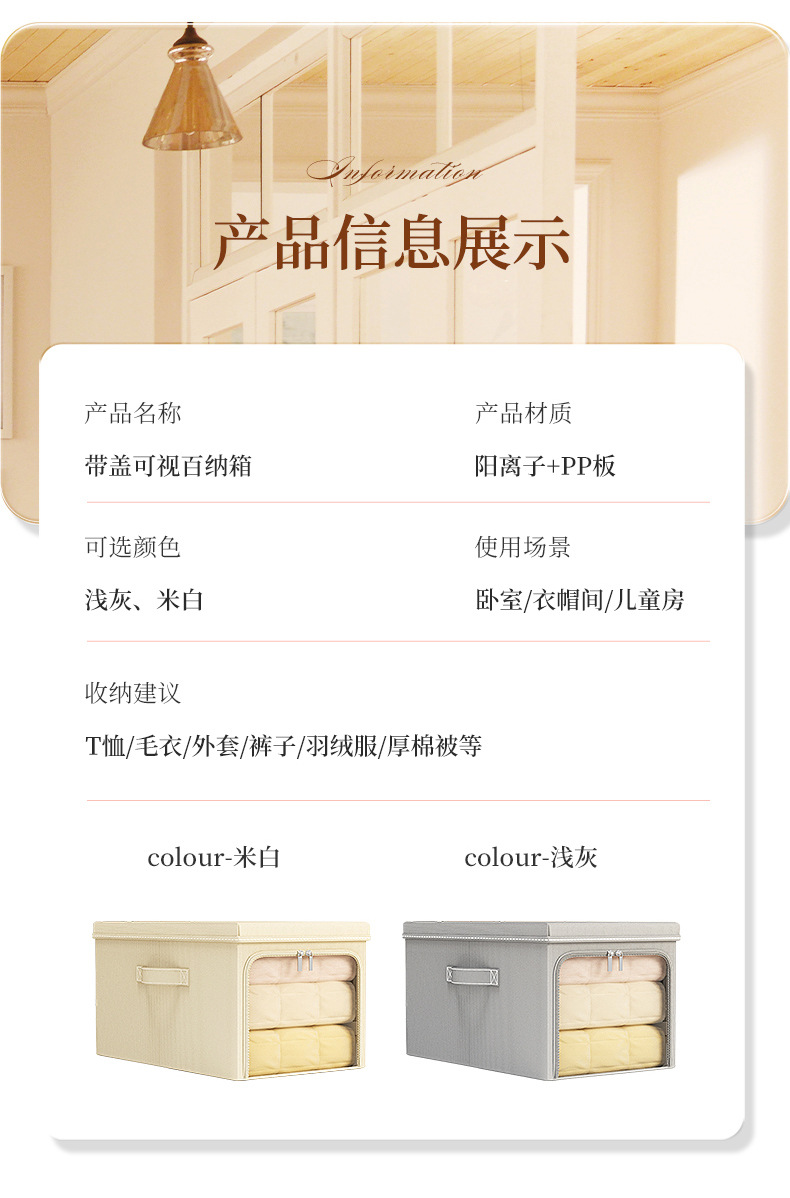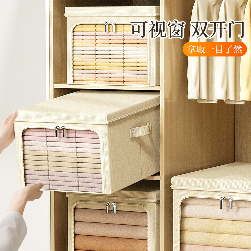 新款衣服收纳箱衣柜装衣物被子整理箱布艺可折叠筐硬盖可视百纳箱