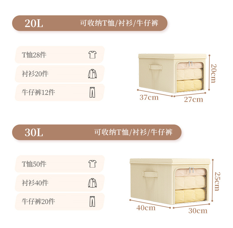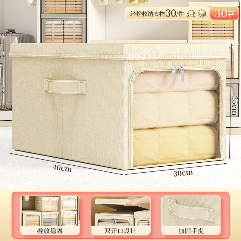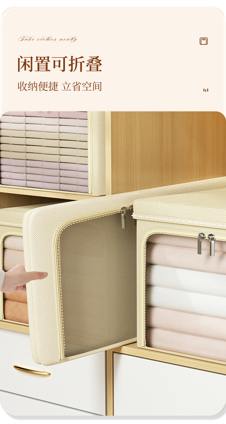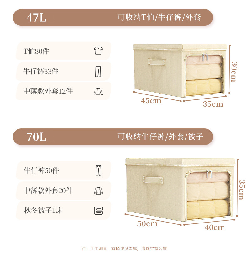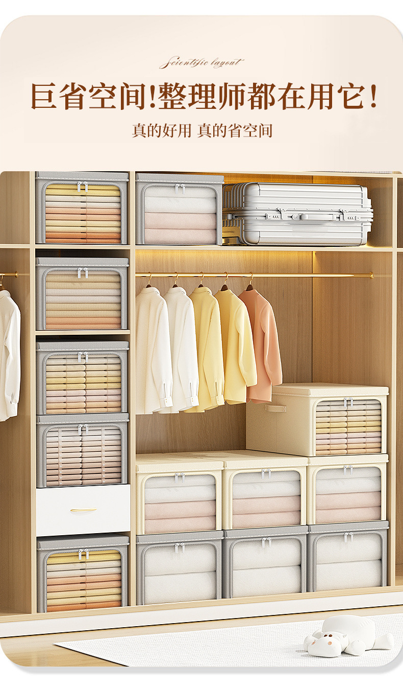 新款衣服收纳箱衣柜装衣物被子整理箱布艺可折叠筐硬盖可视百纳箱