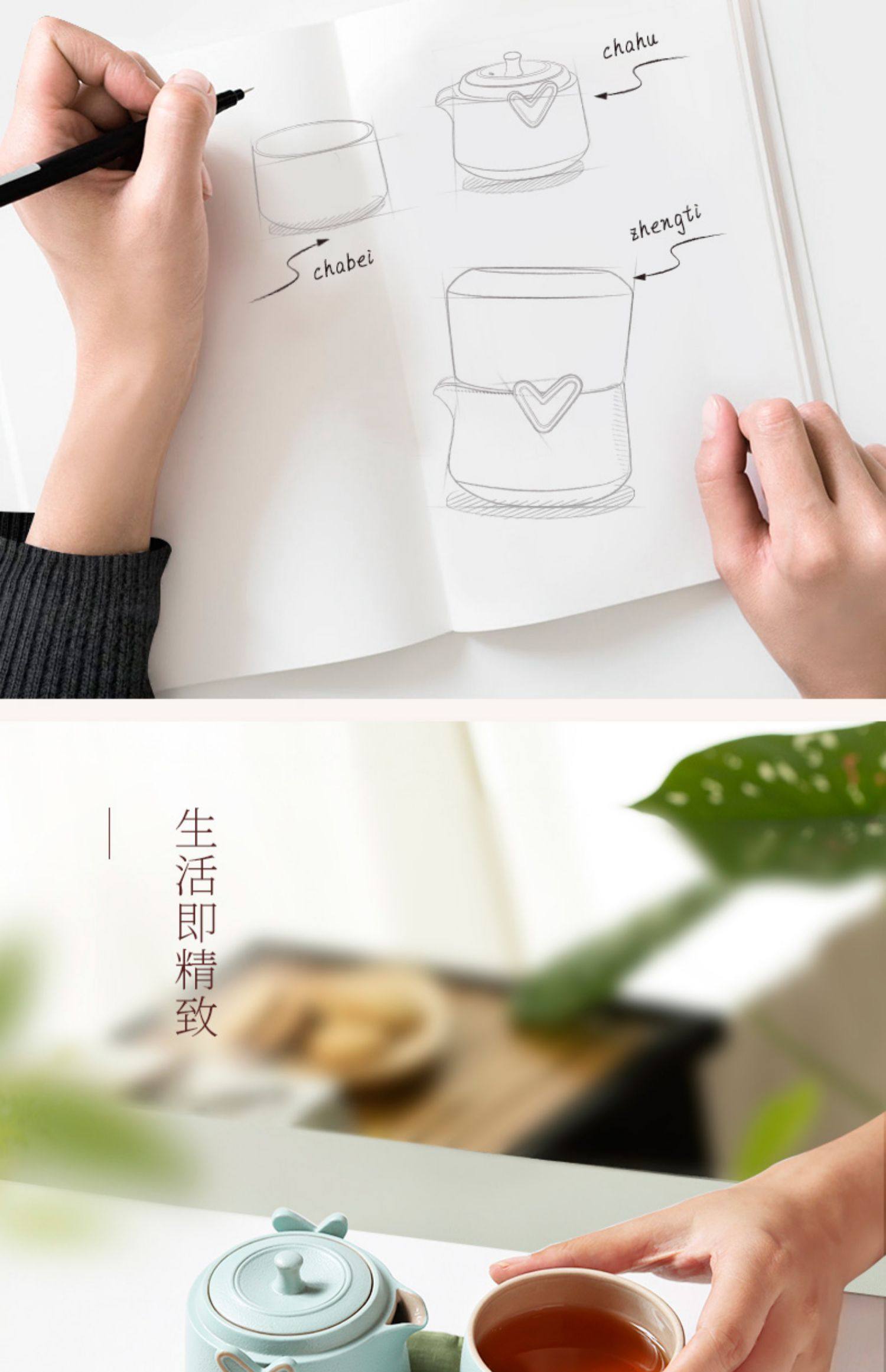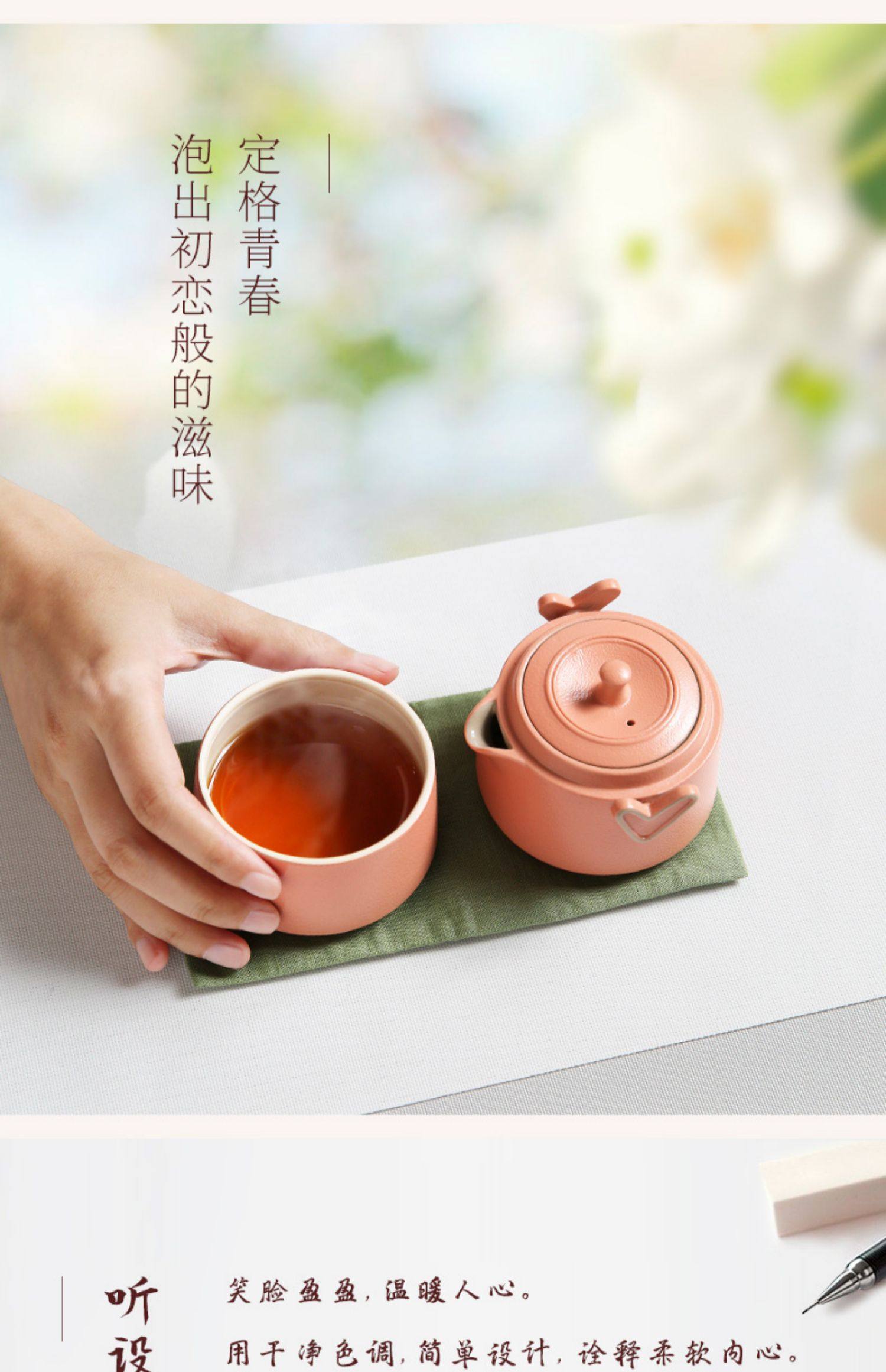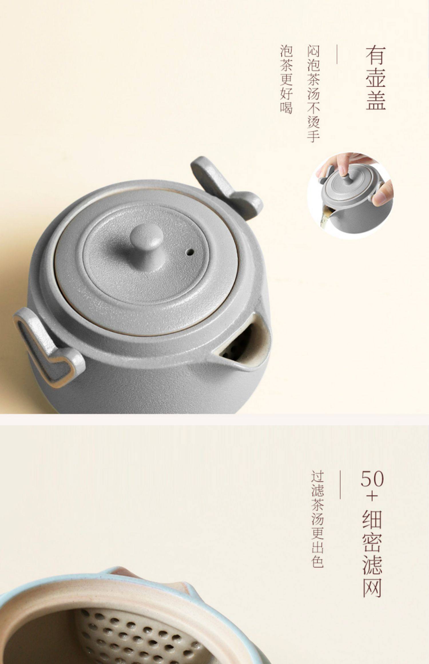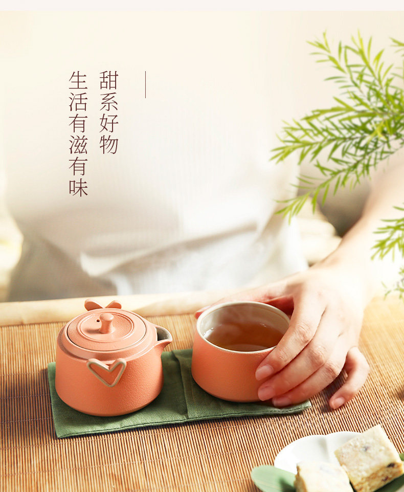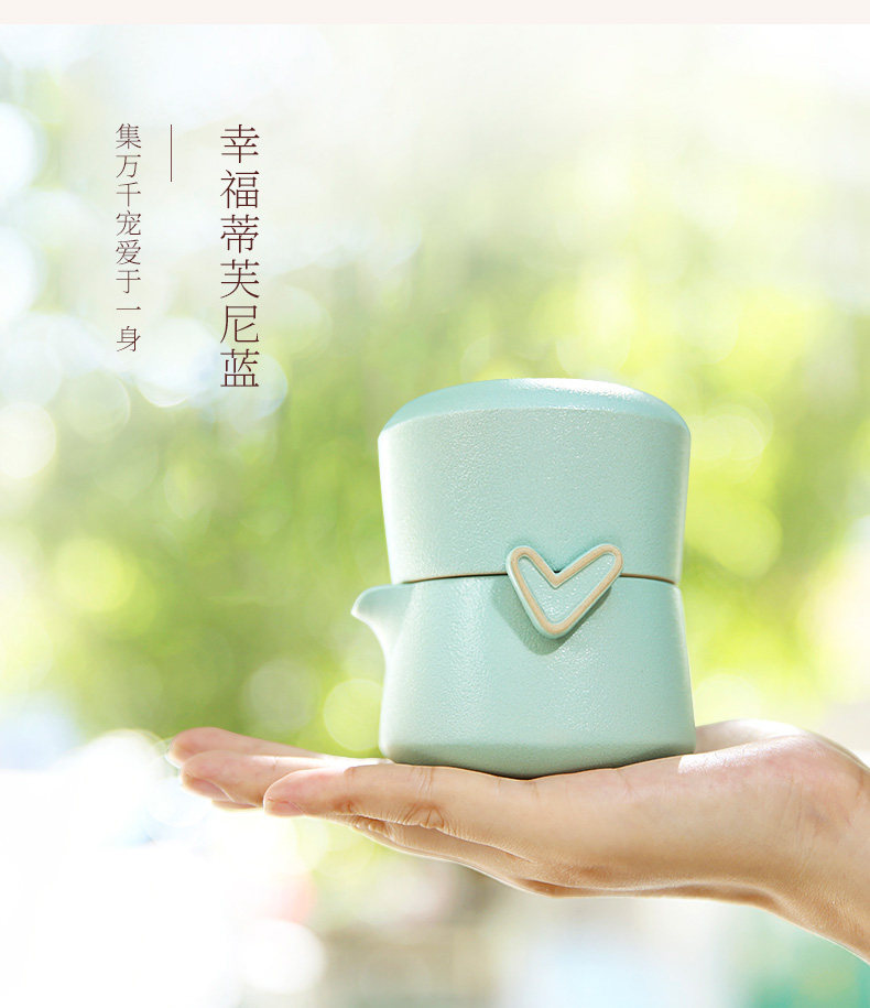 台湾陆宝快客杯一壶一杯心想事成随手泡家用旅行便携泡茶陶瓷茶具