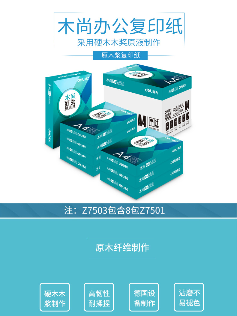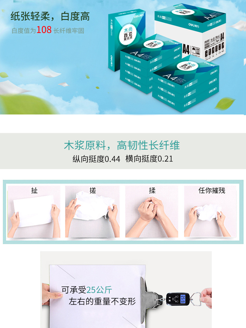 木尚A4复印纸打印纸80g70克白纸草稿纸办公用品广东整箱办公