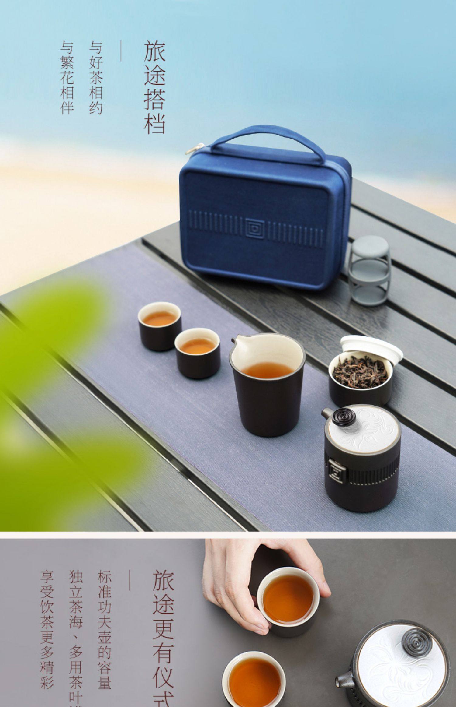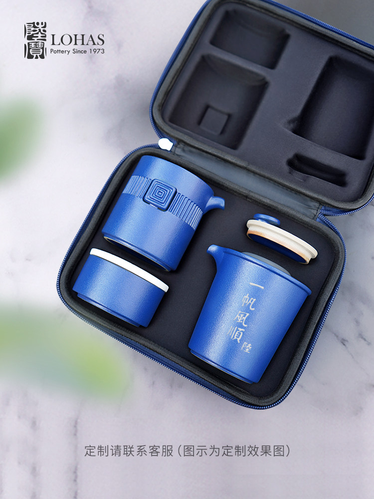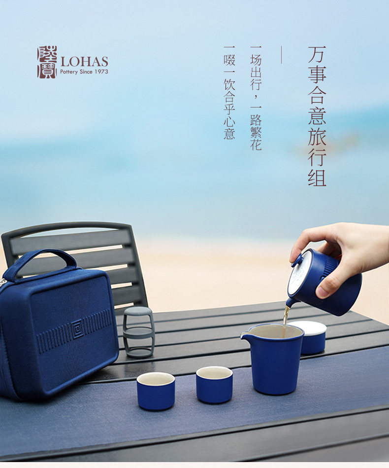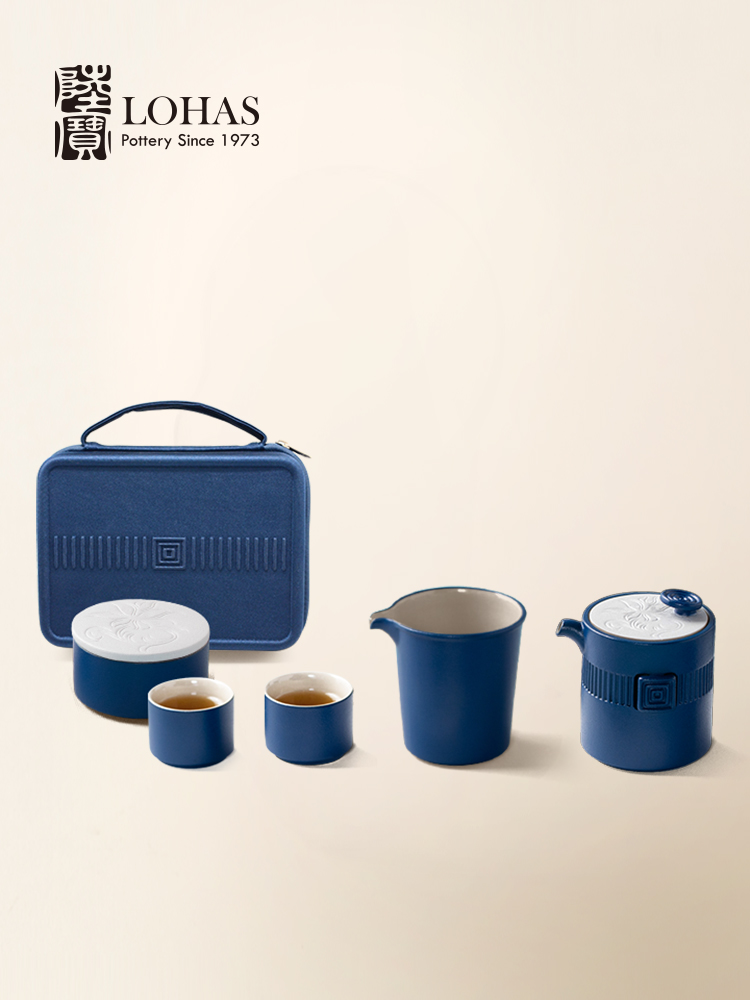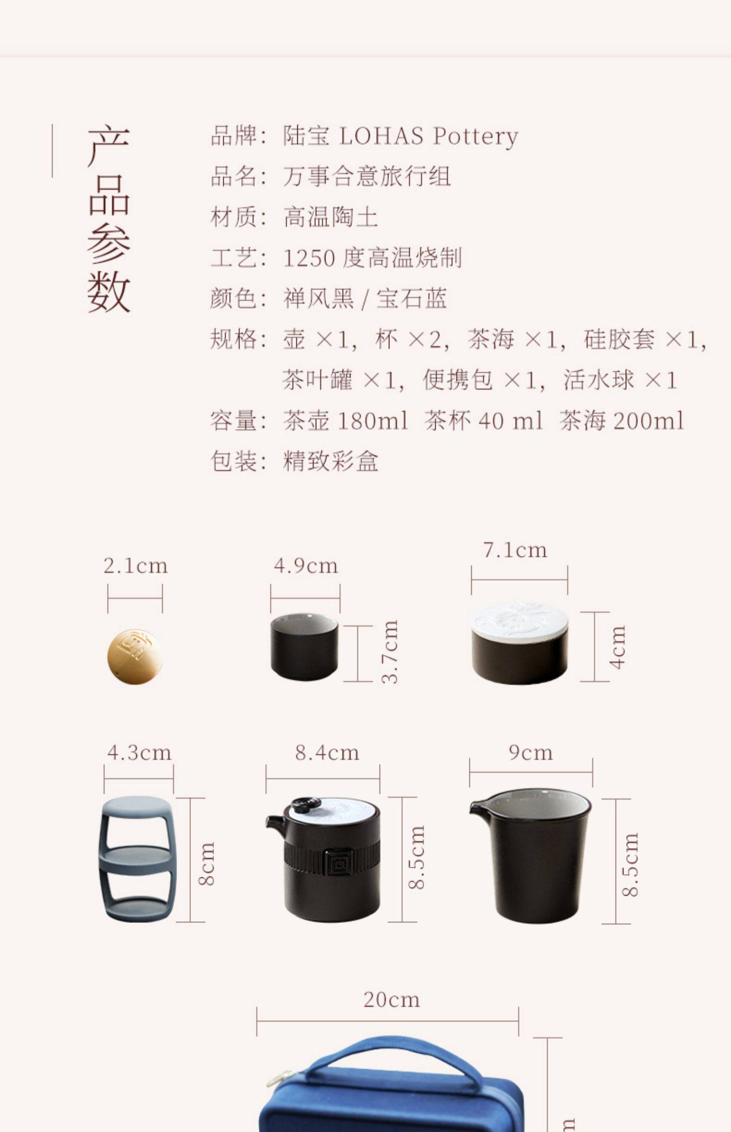 台湾陆宝旗舰店陶瓷茶具套装露营旅行便携式茶具茶壶万事合意
