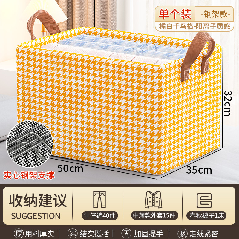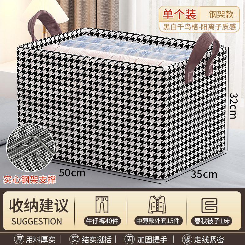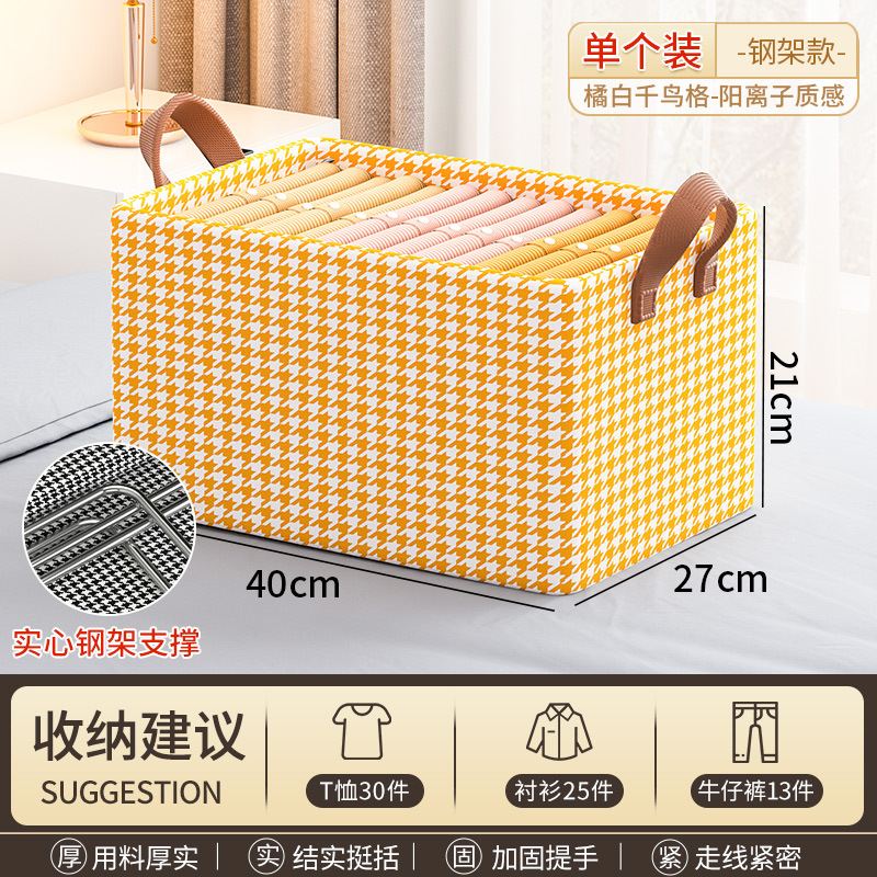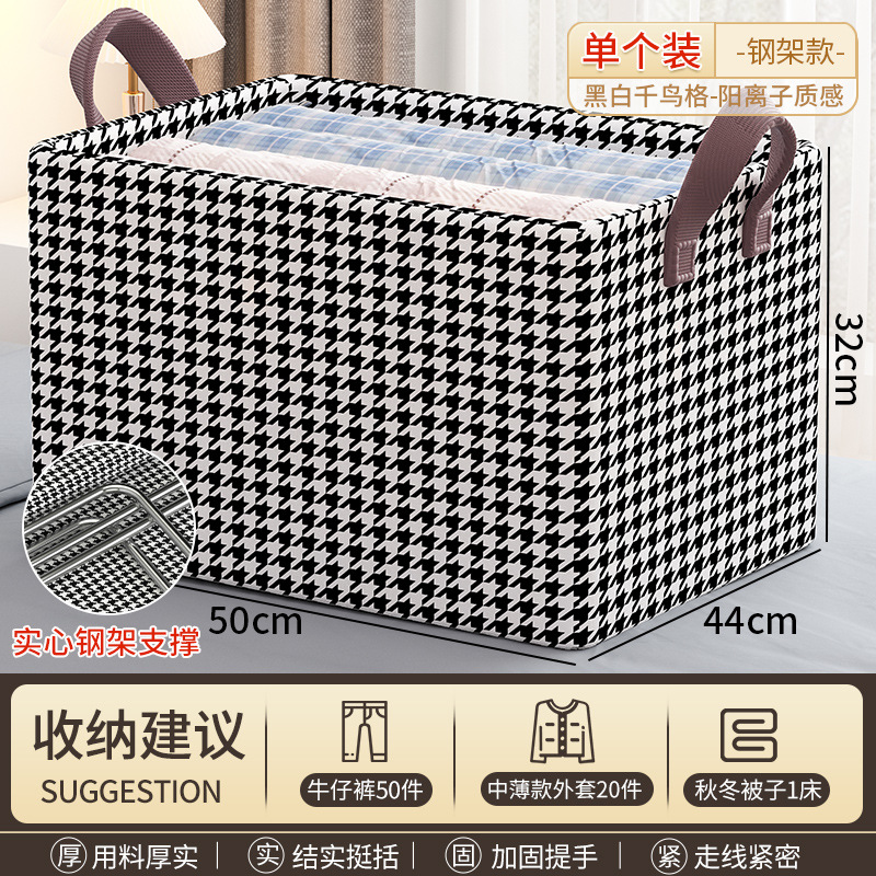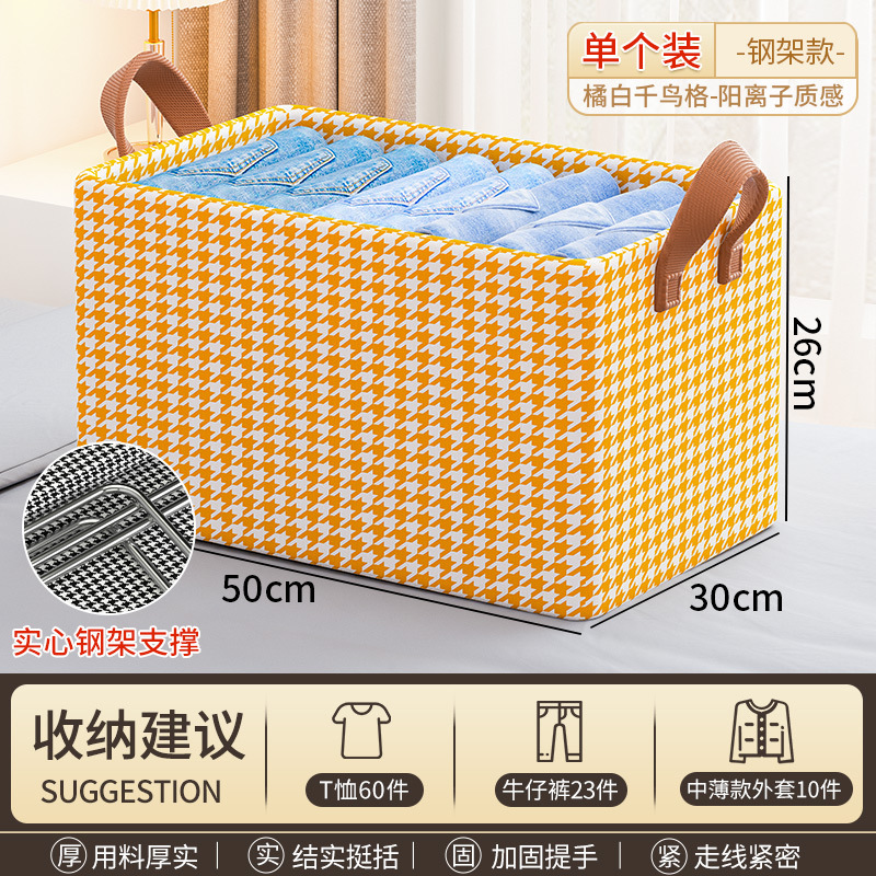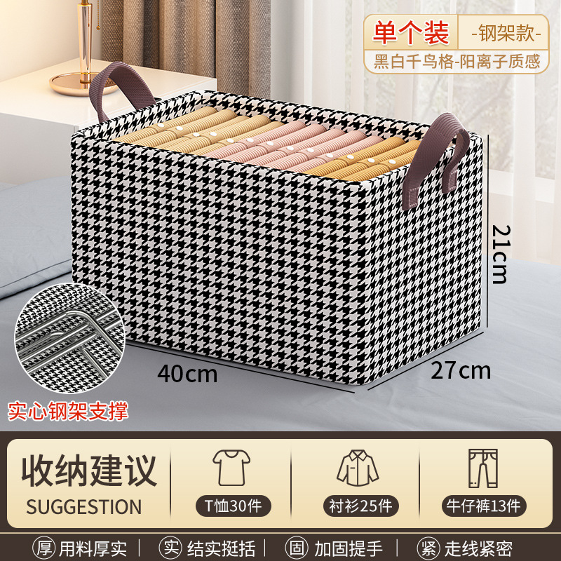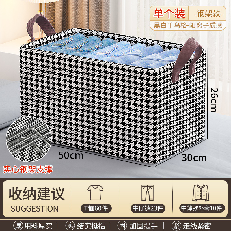 新款衣服收纳箱大容量家用整理盒抽屉式布艺储物箱子千鸟格钢架筐