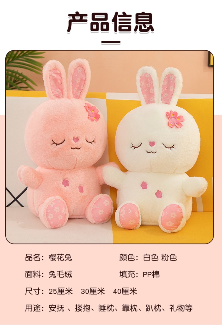 可爱樱花兔毛绒玩具新款小兔子公仔儿童玩偶布娃娃睡觉抱枕礼物女