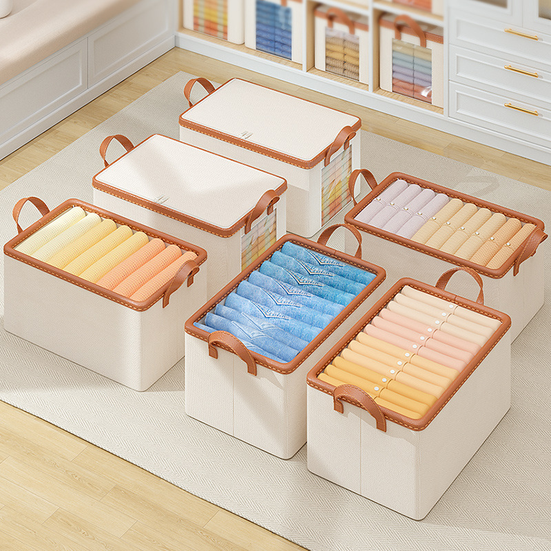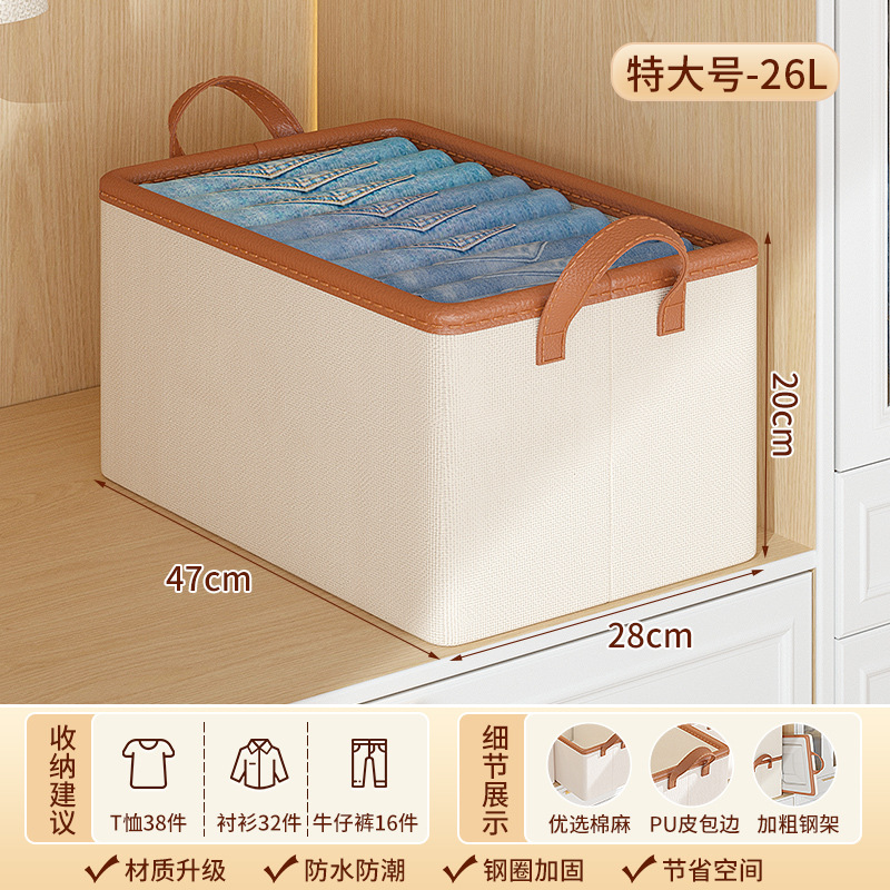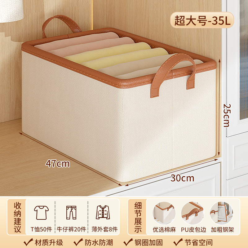 棉麻家用衣柜抽屉式分层裤子整理盒宿舍储物筐衣物布艺衣服收纳箱