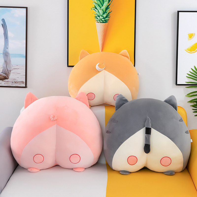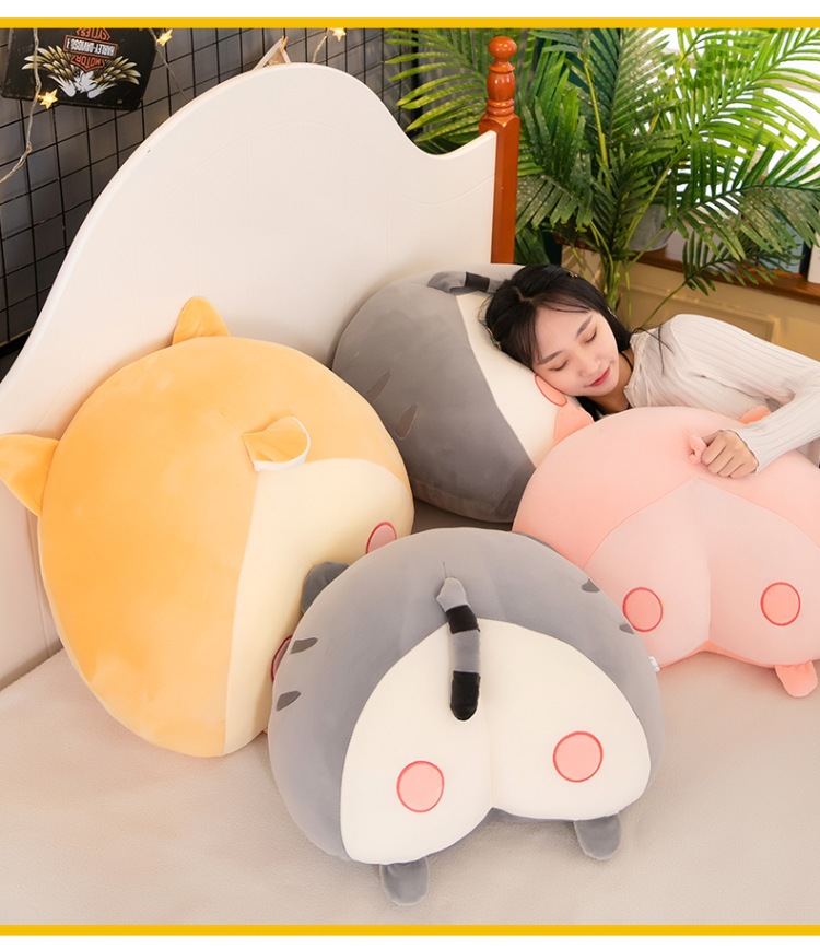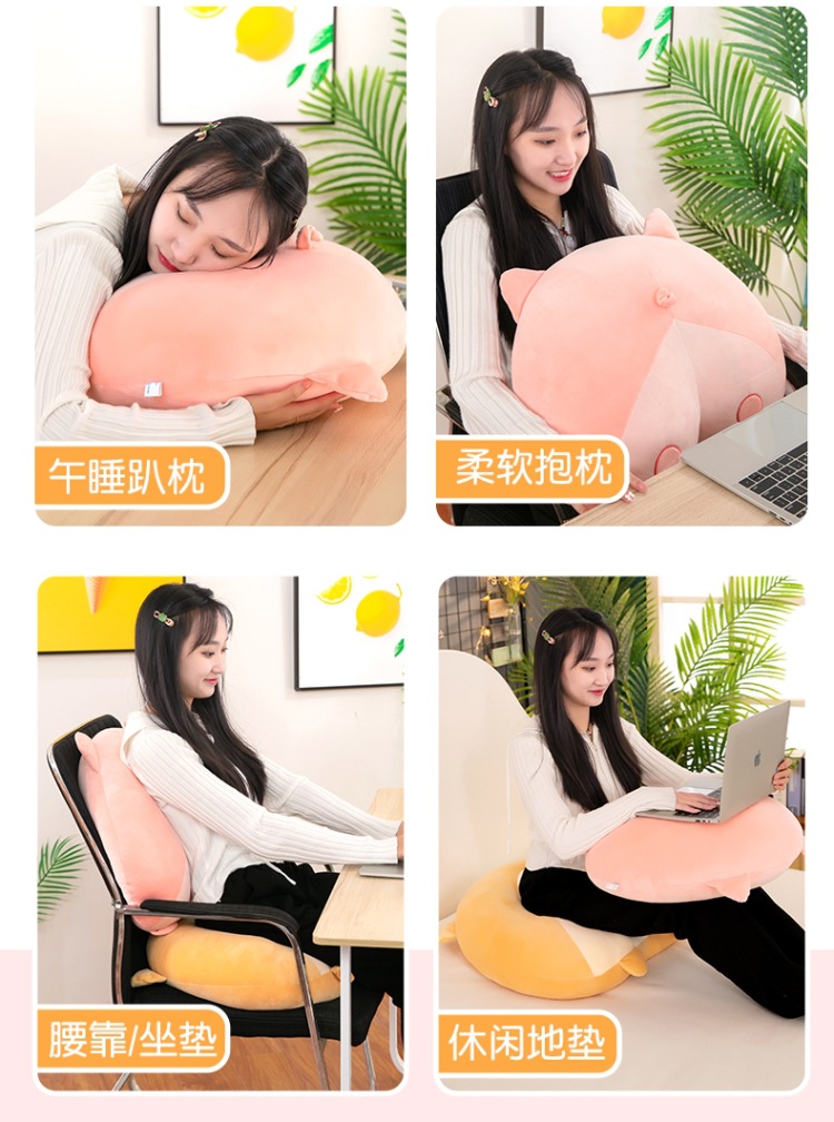 可爱屁屁抱枕毛绒玩具卡通动物坐垫柯基屁股小猪公仔办公靠垫代发
