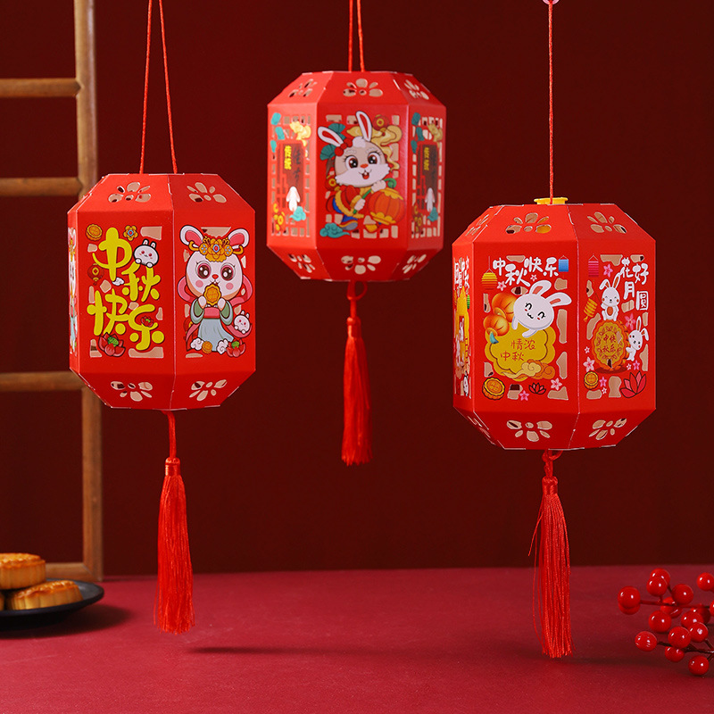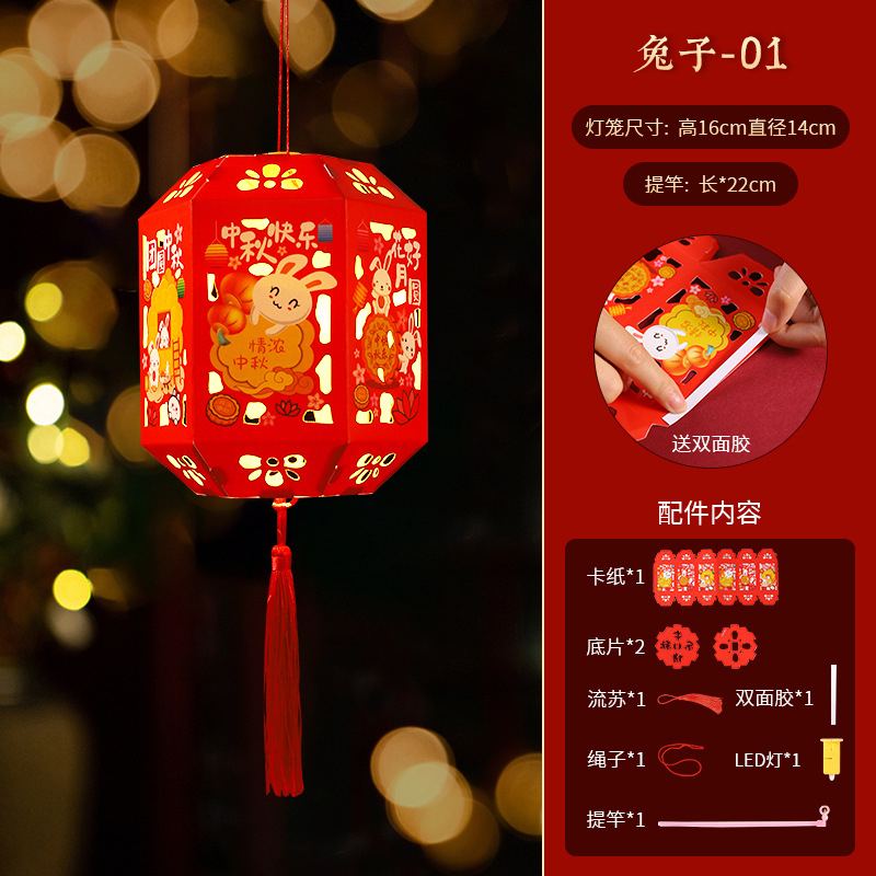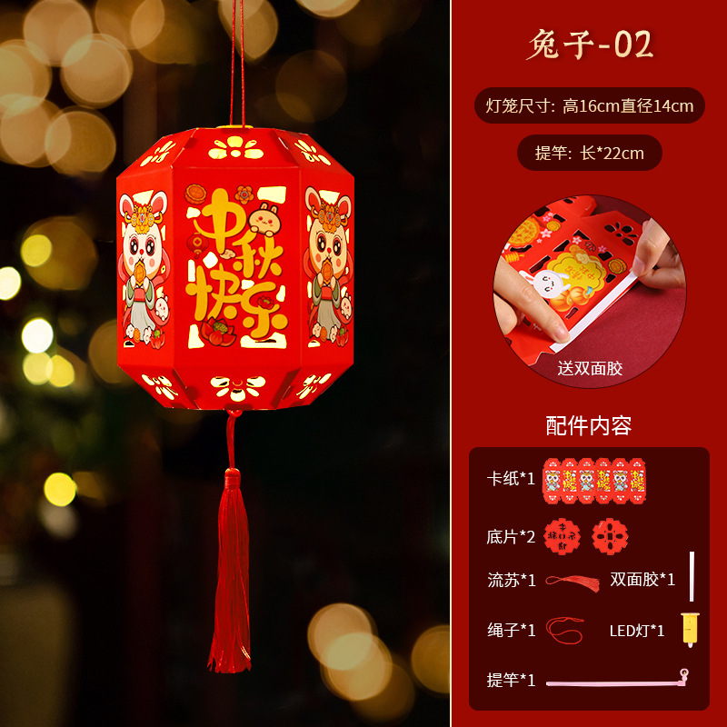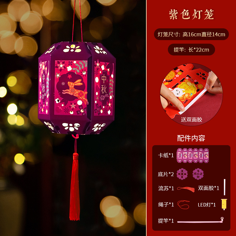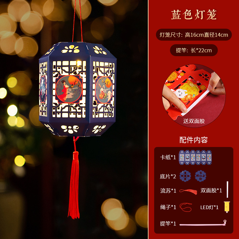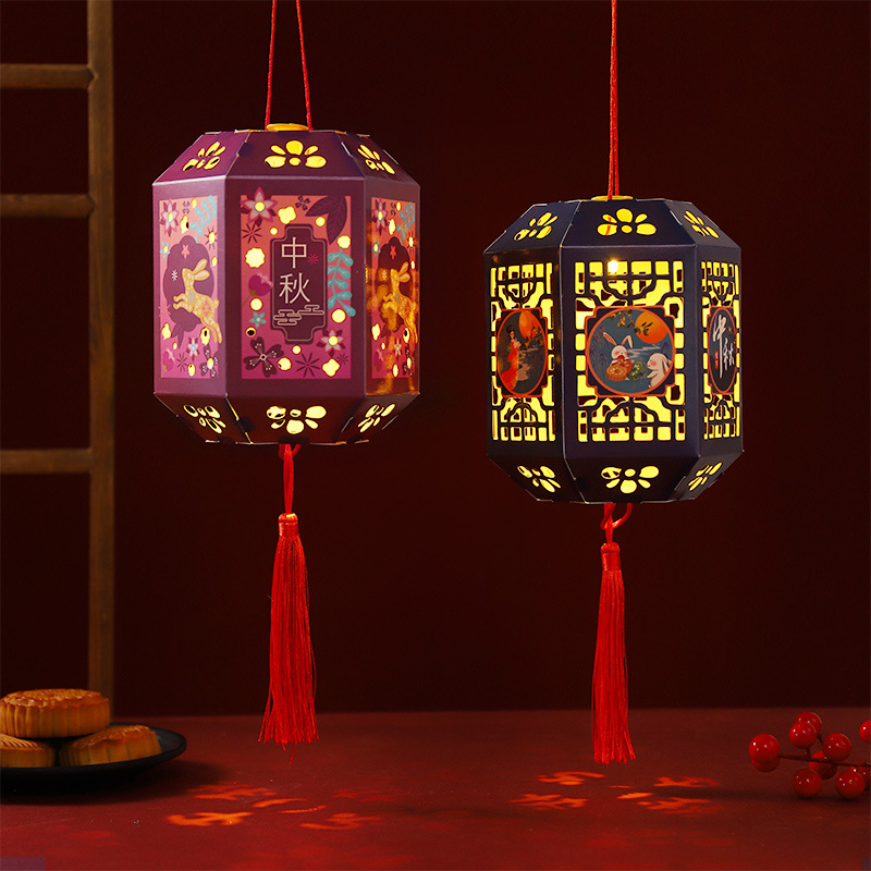 中秋节灯笼手工制作DIY材料包儿童手提发光古风卡通投影走马花灯