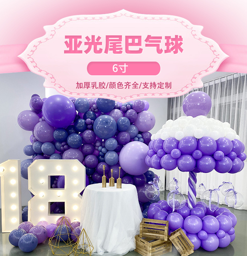 批发亚光10寸针尾气球婚礼婚庆生日做造型连接乳胶亚光尾巴气球