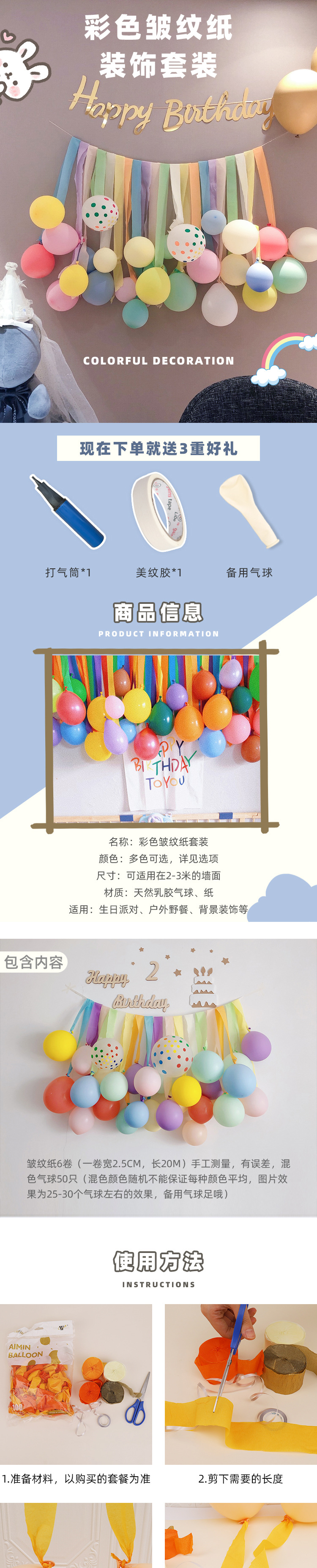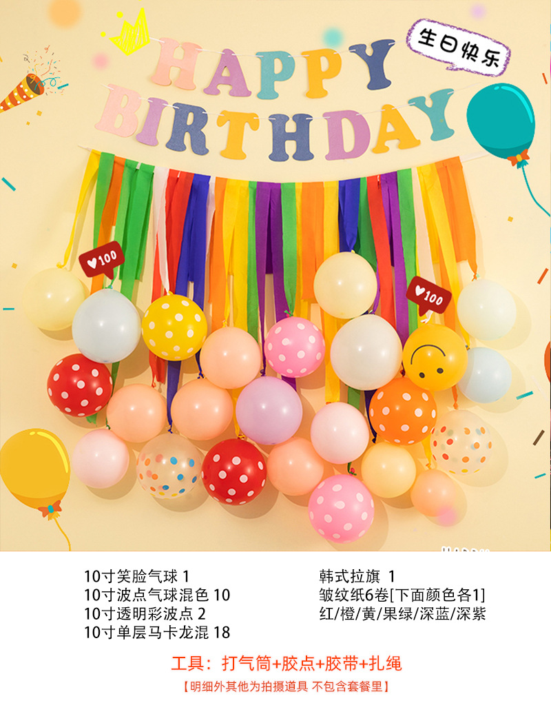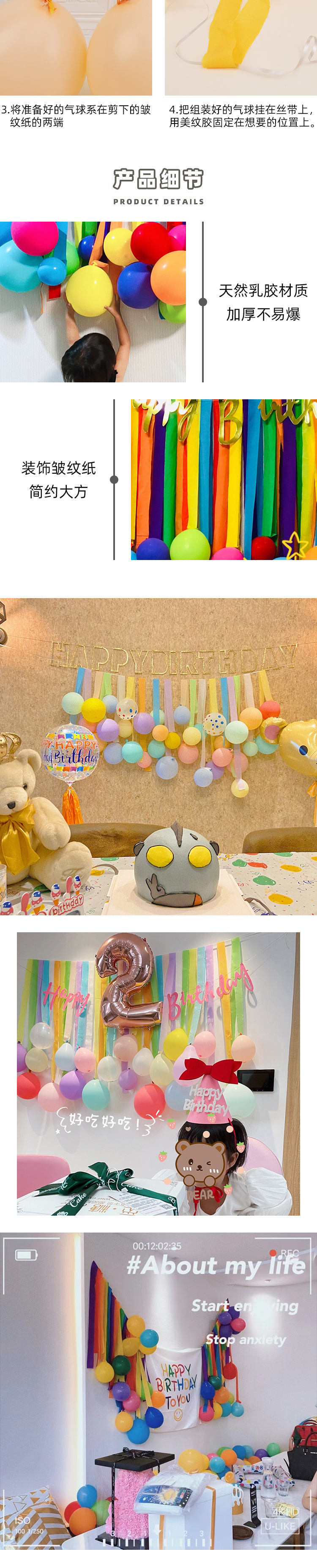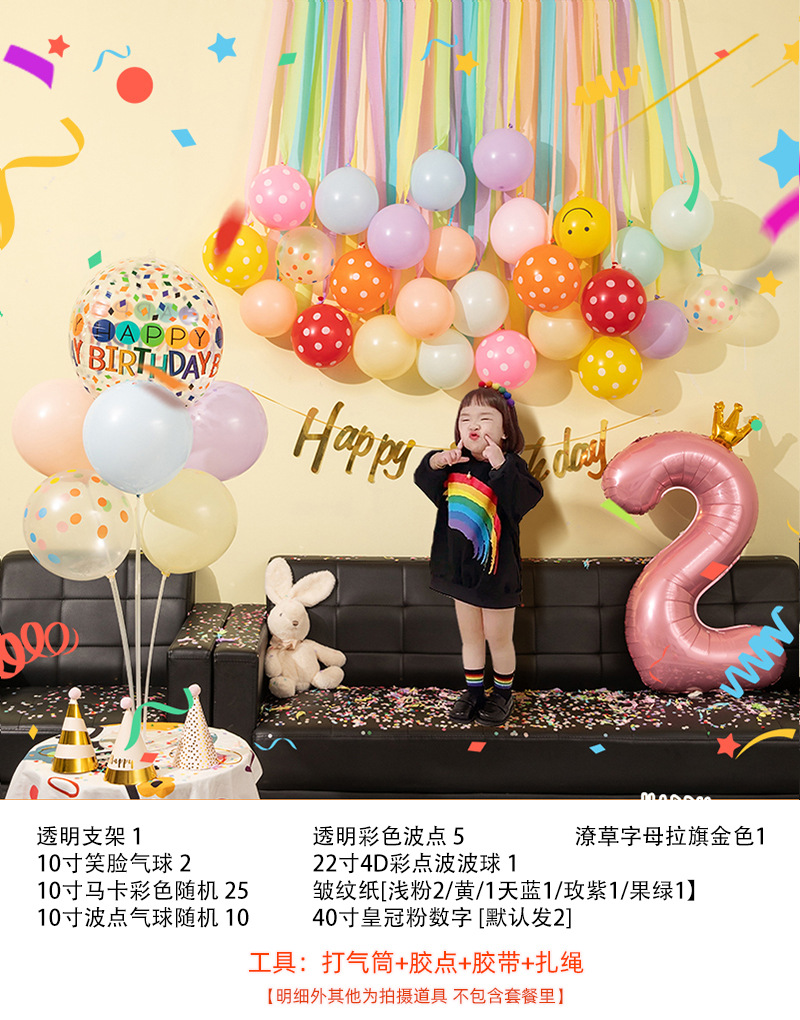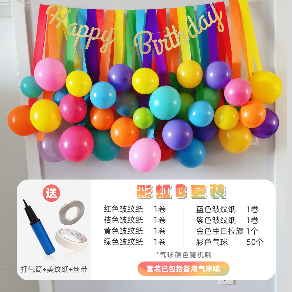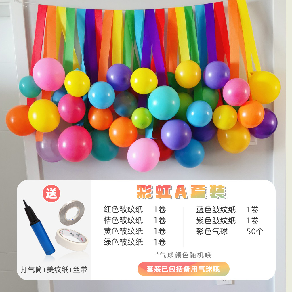 网红彩色流苏拉花纸卷气球墙儿童周岁生日派对装饰布置拍照背景墙