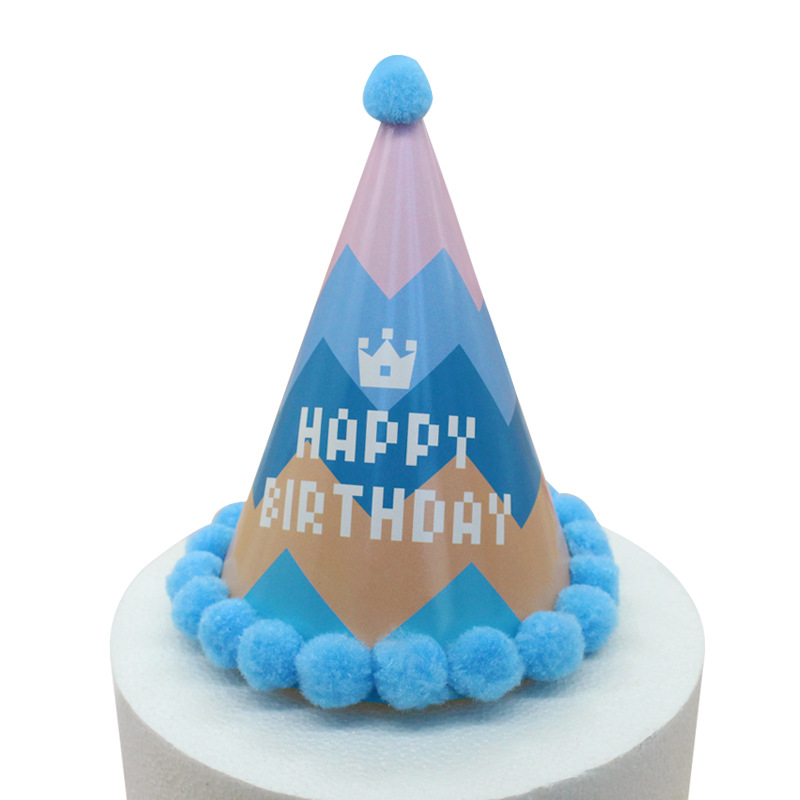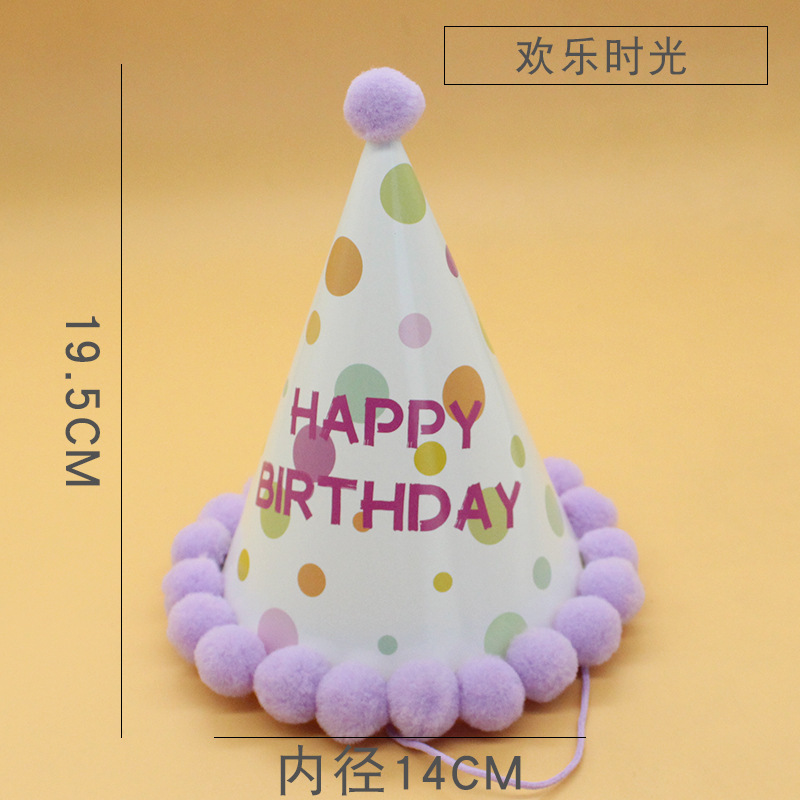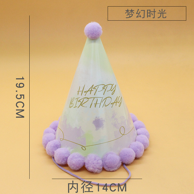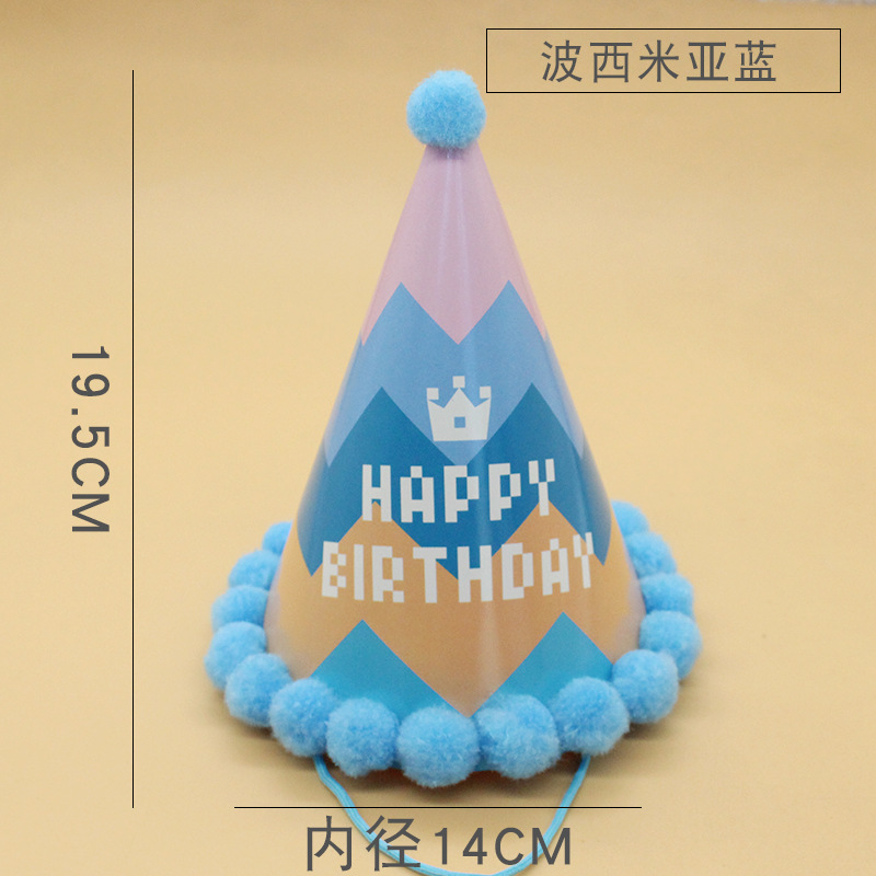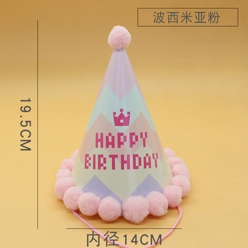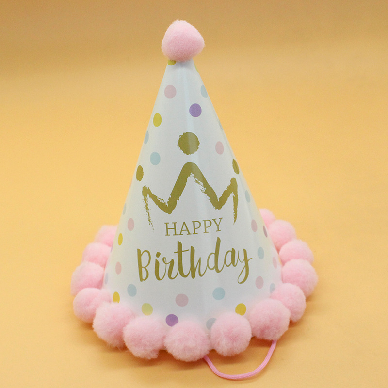 批发新款小清新绒球生日帽 宝宝成人周岁创意派对聚会尖角毛球帽