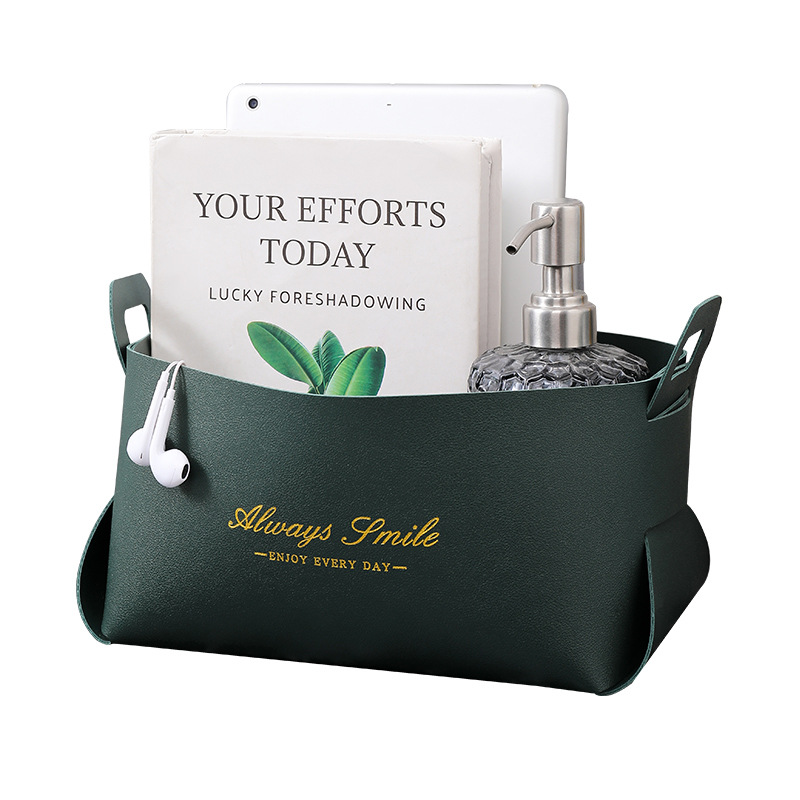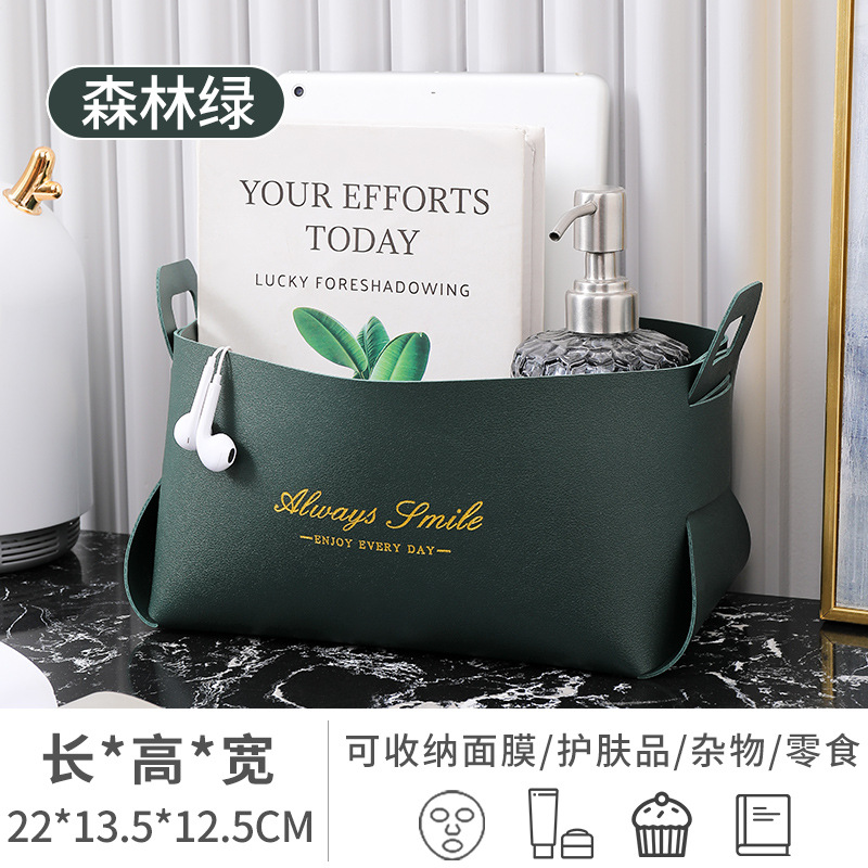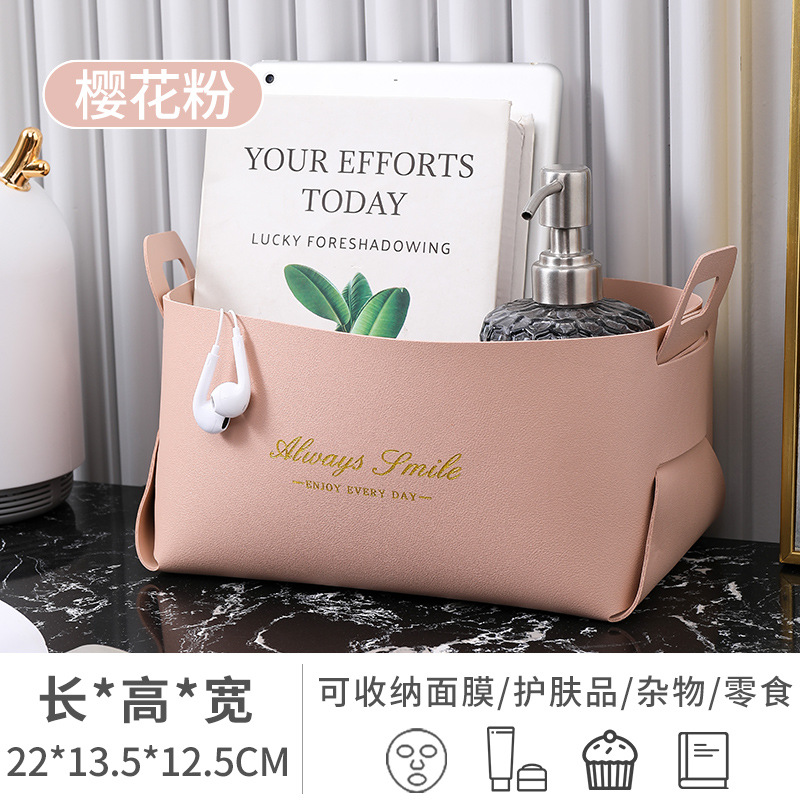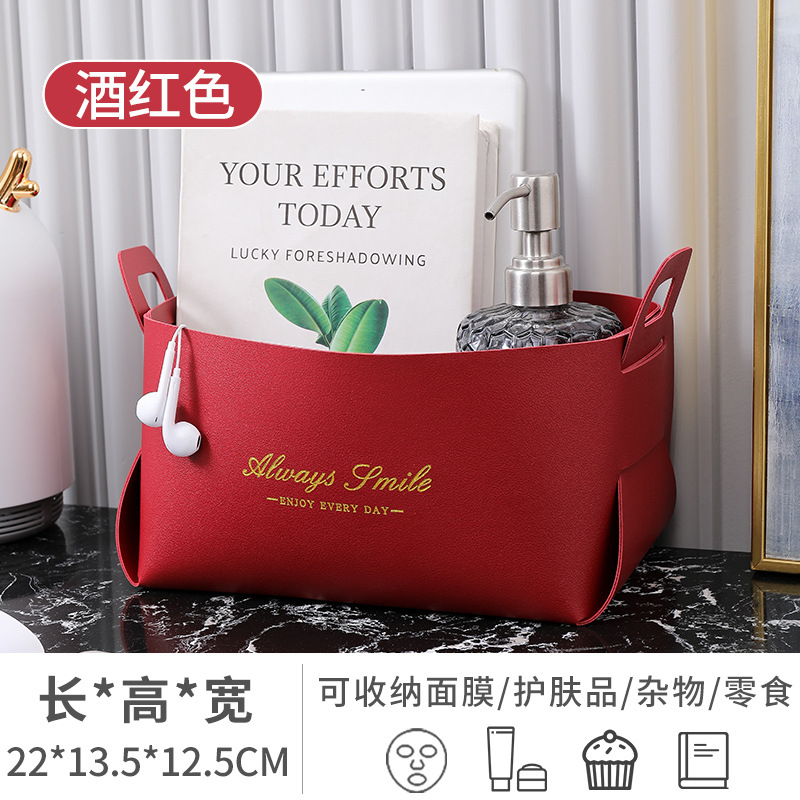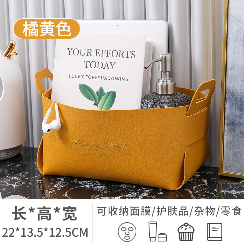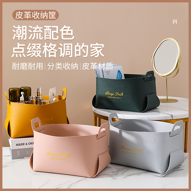 跨境PU皮革桌面收纳整理筐北欧风大容量创意家居化妆遥控器收纳盒