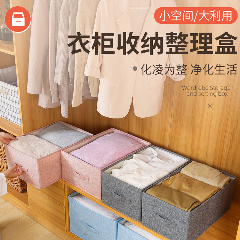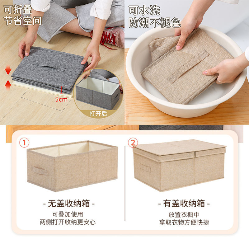 棉麻布艺抽屉式衣服裤子收纳箱可折叠整理箱布艺收纳盒衣柜大容量