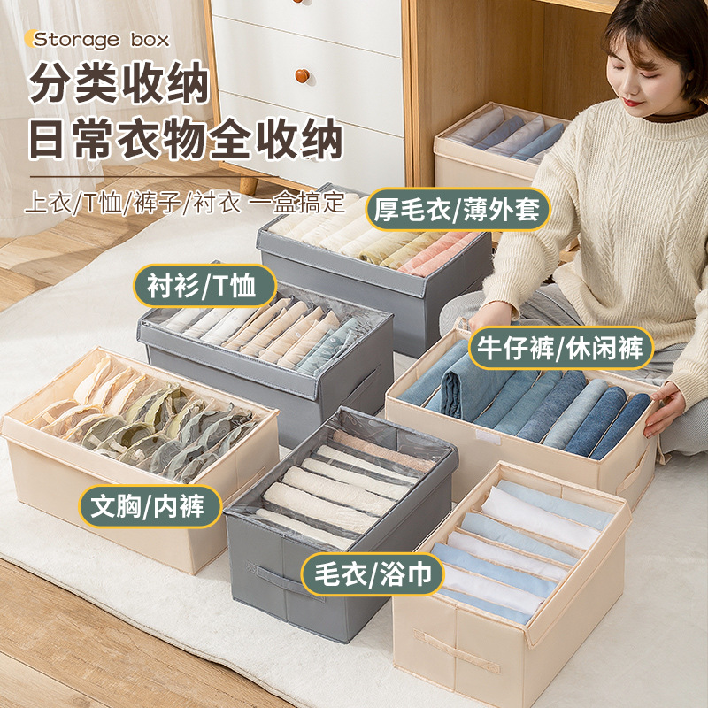 裤子收纳箱衣柜分层家用袋衣物整理箱放牛仔裤分格袋子衣服分隔盒