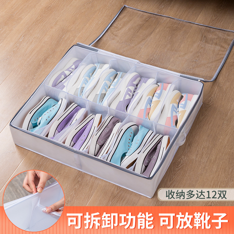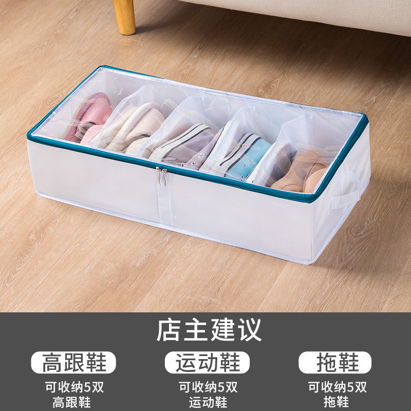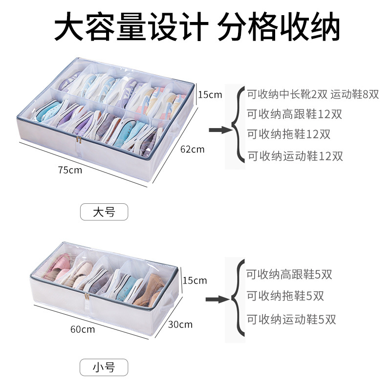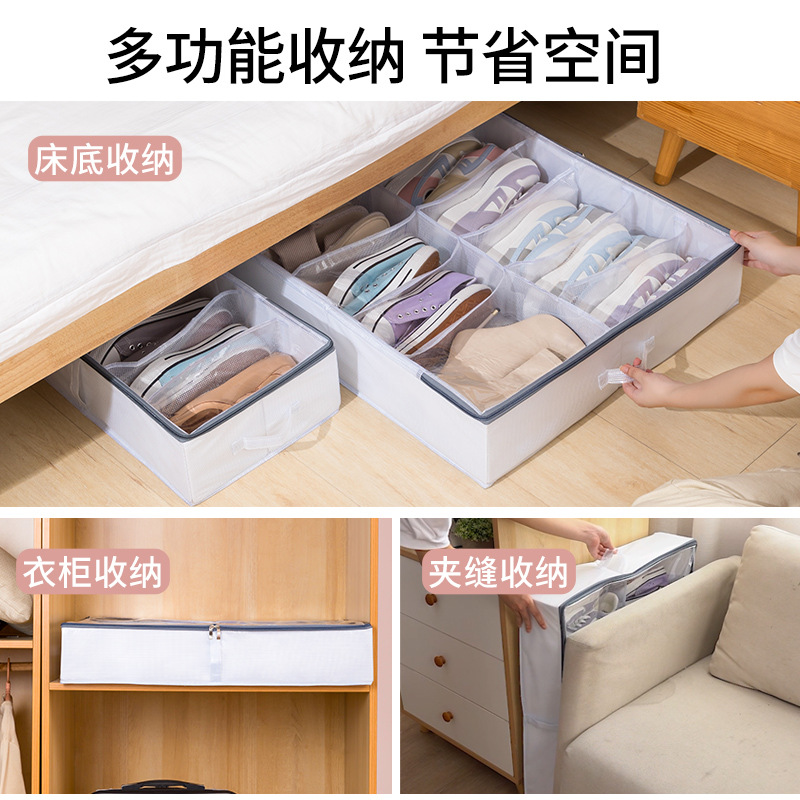 PVC布艺可调节床底鞋收纳盒大容量鞋子收纳防尘鞋盒可水洗可折叠