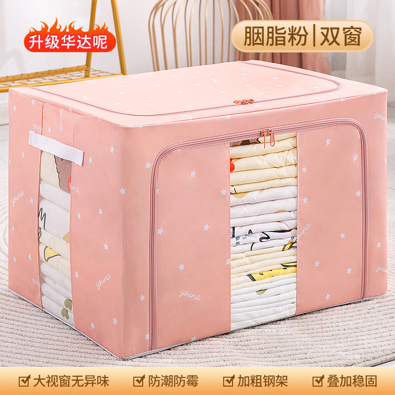 新款大号印花华达呢钢架箱百纳箱衣服被子收纳袋