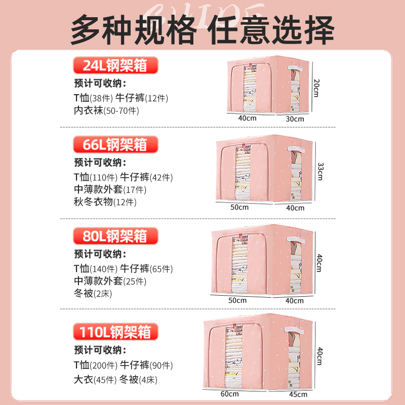 衣服裤子布艺衣柜卧室整理百纳收纳箱家用牛津布印花钢架箱